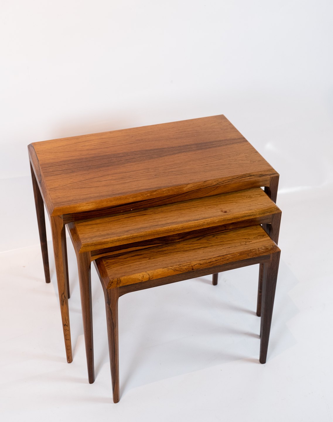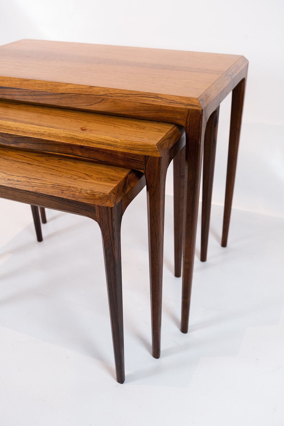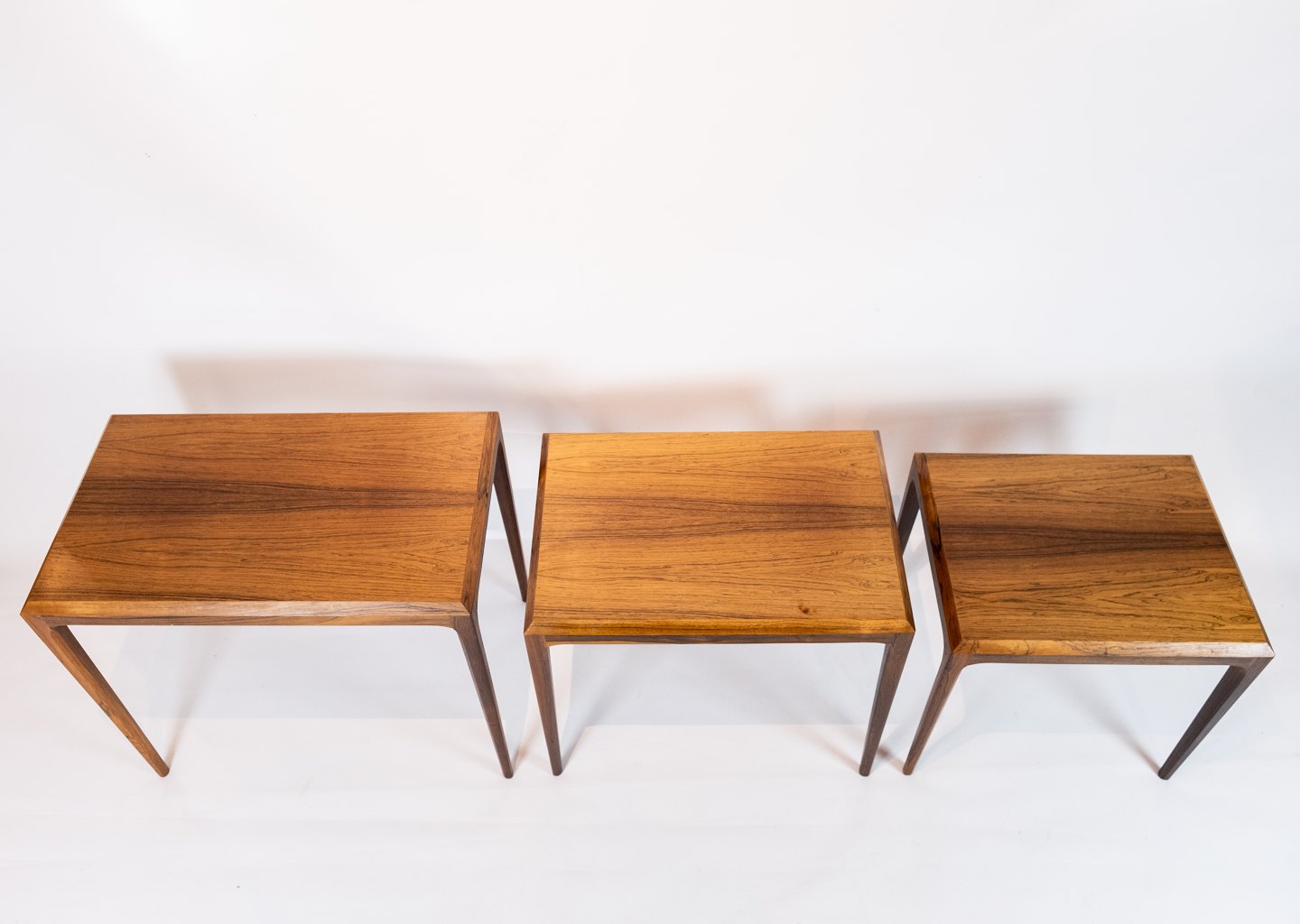 SoldNesting tables in rosewood designed by Johannes Andersen and manufactured by Silkeborg Furniture in the 1960s. All in great vintage condition.