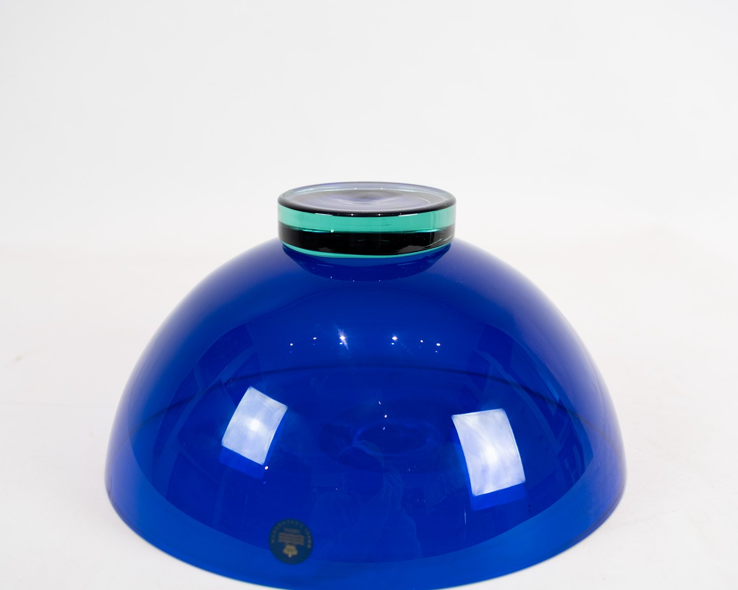 SoldLarge dark blue glass bowl by Holmegaard, in great used condition.