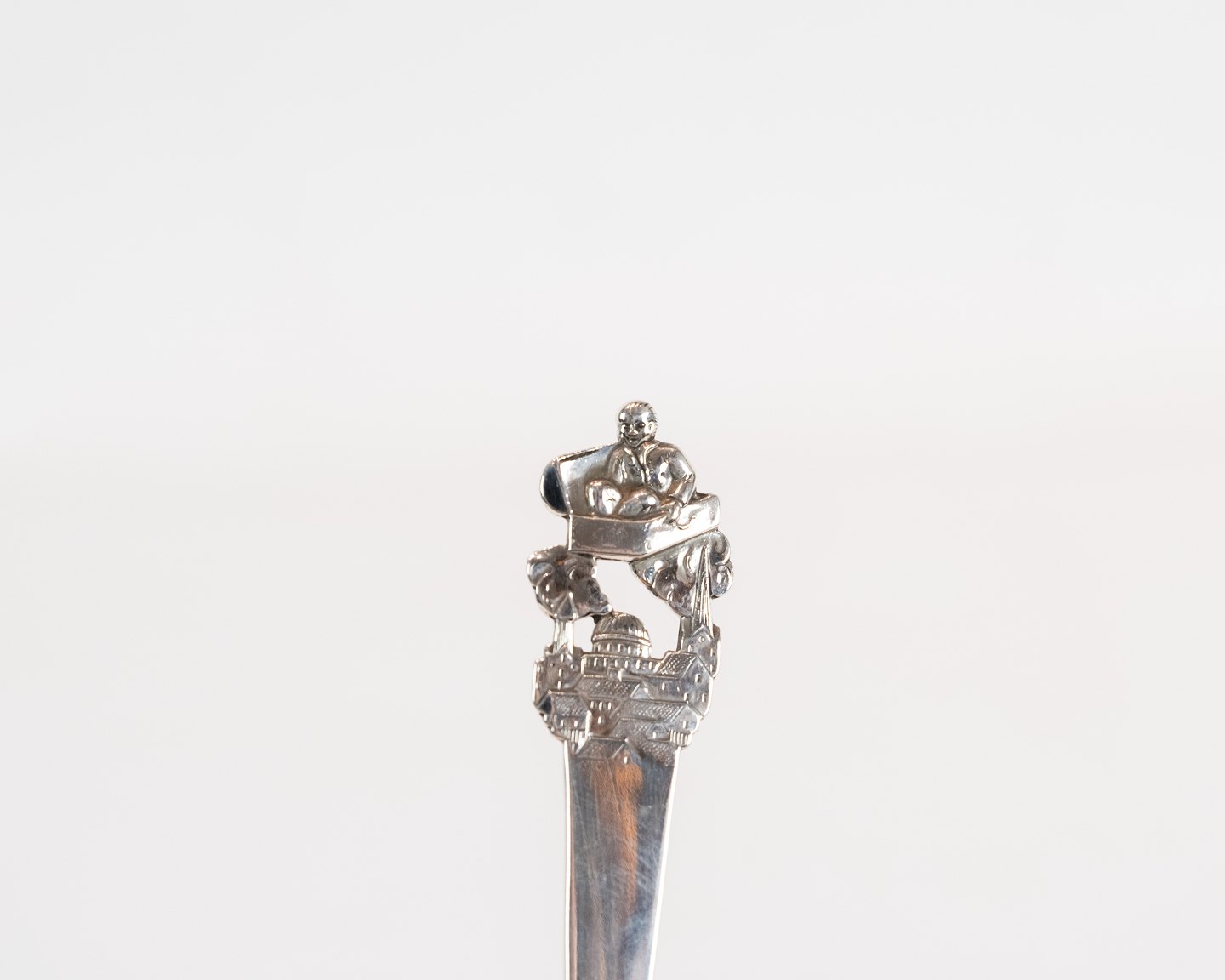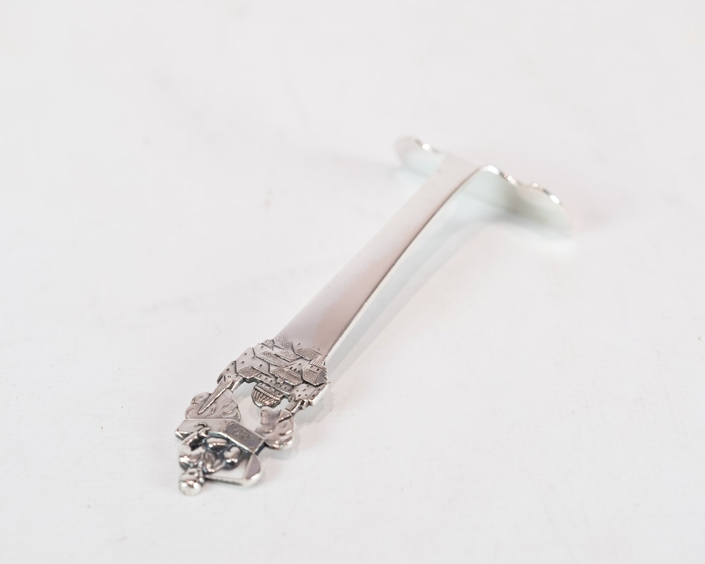 Children's fork and pusher for food with motif H.C. Andersen's The Flying Trunk in hallmarked silver.