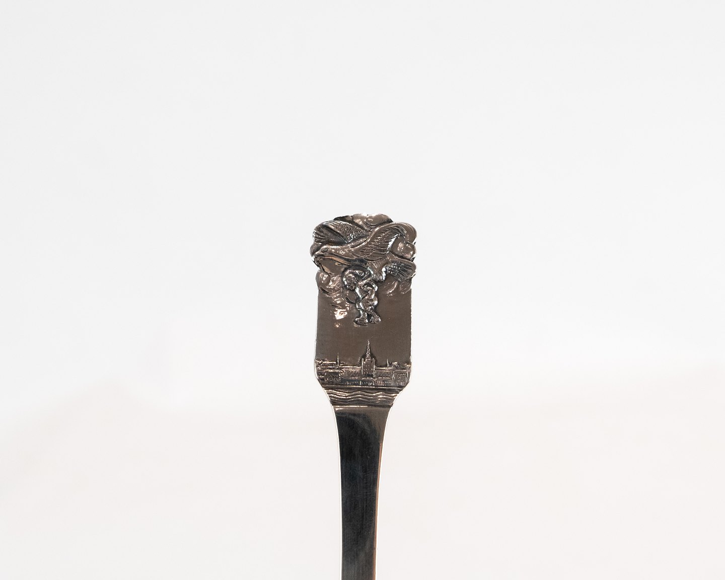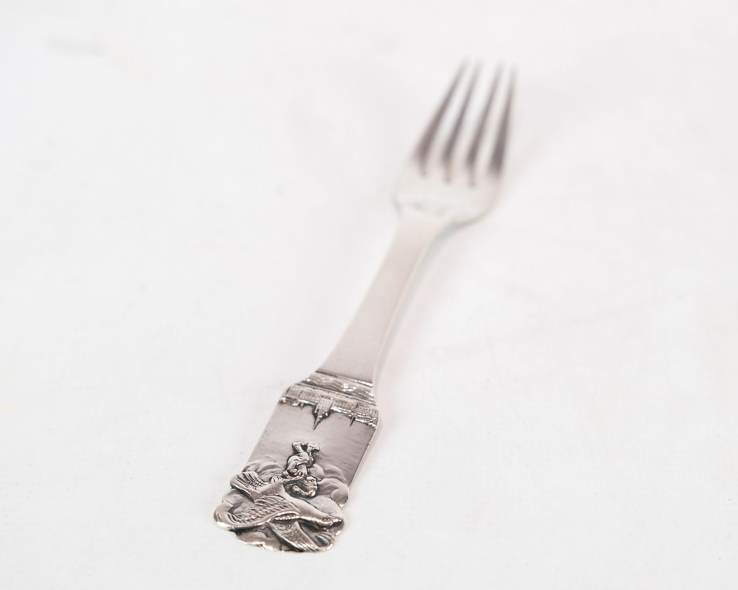 Barneske med motiv af H.C. Andersen i tretårnet sølv.