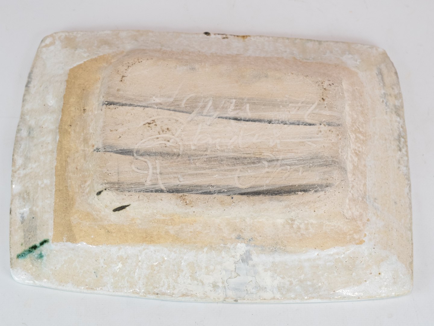 Ceramic dish in dark and light colors by Jeppe Hagedorn Olsen.