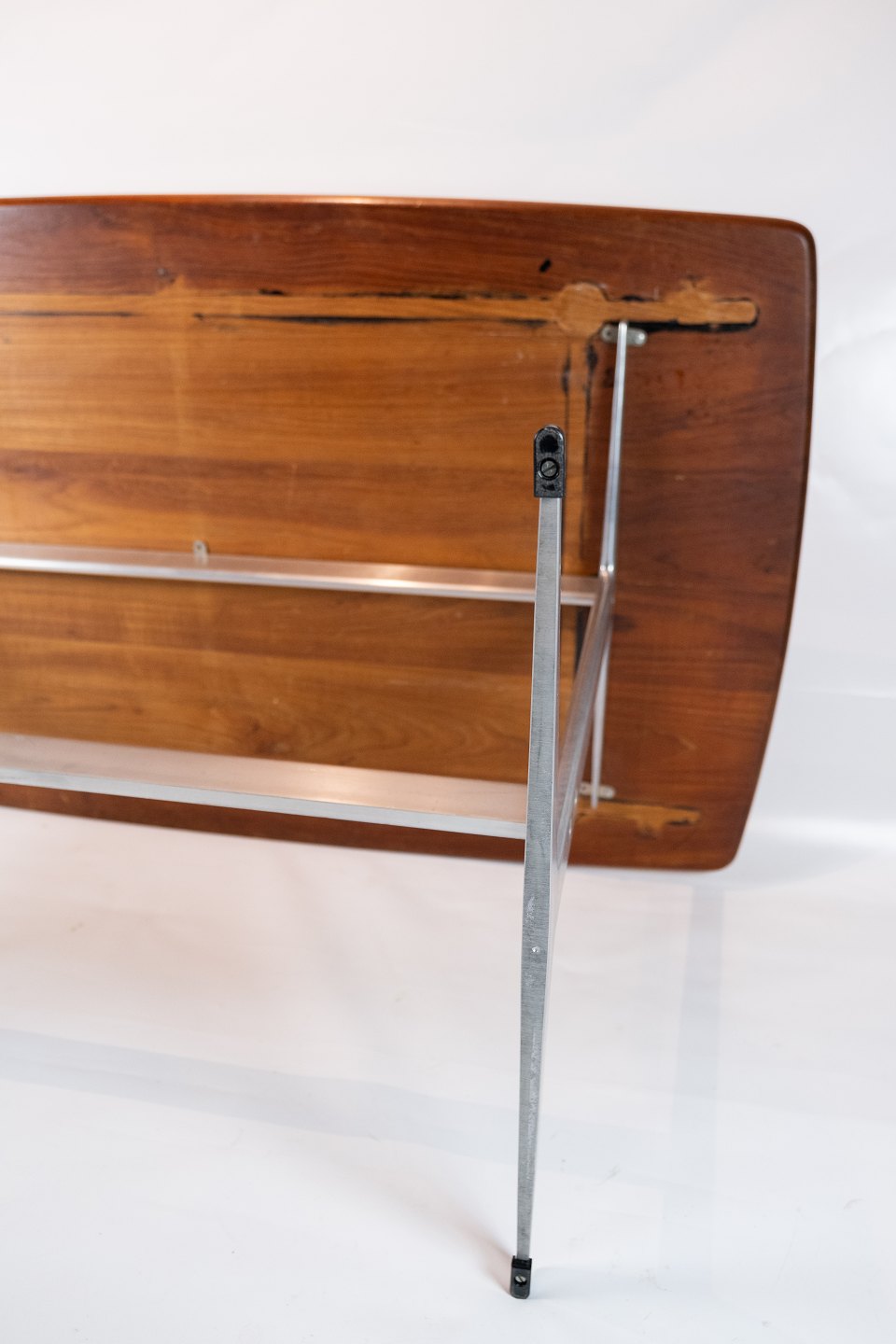 Shakerbord i teak og med metal stel designet af Arne Jacobsen fra 1960erne. Bordet er i flot brugt stand.