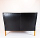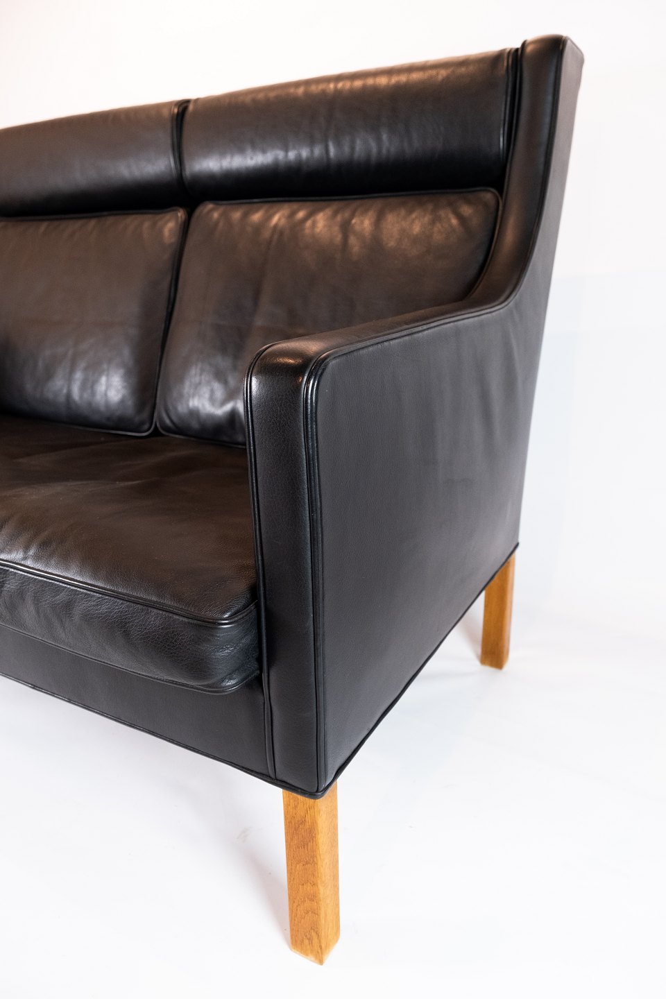 Denne sofa udstråler en enkel og tidløs elegance med sit sorte læderbetræk og robuste konstruktion. Børge Mogensen var kendt for sit fokus på funktionalitet og ærlige materialer, og dette afspejles tydeligt i Kupe sofaens design.