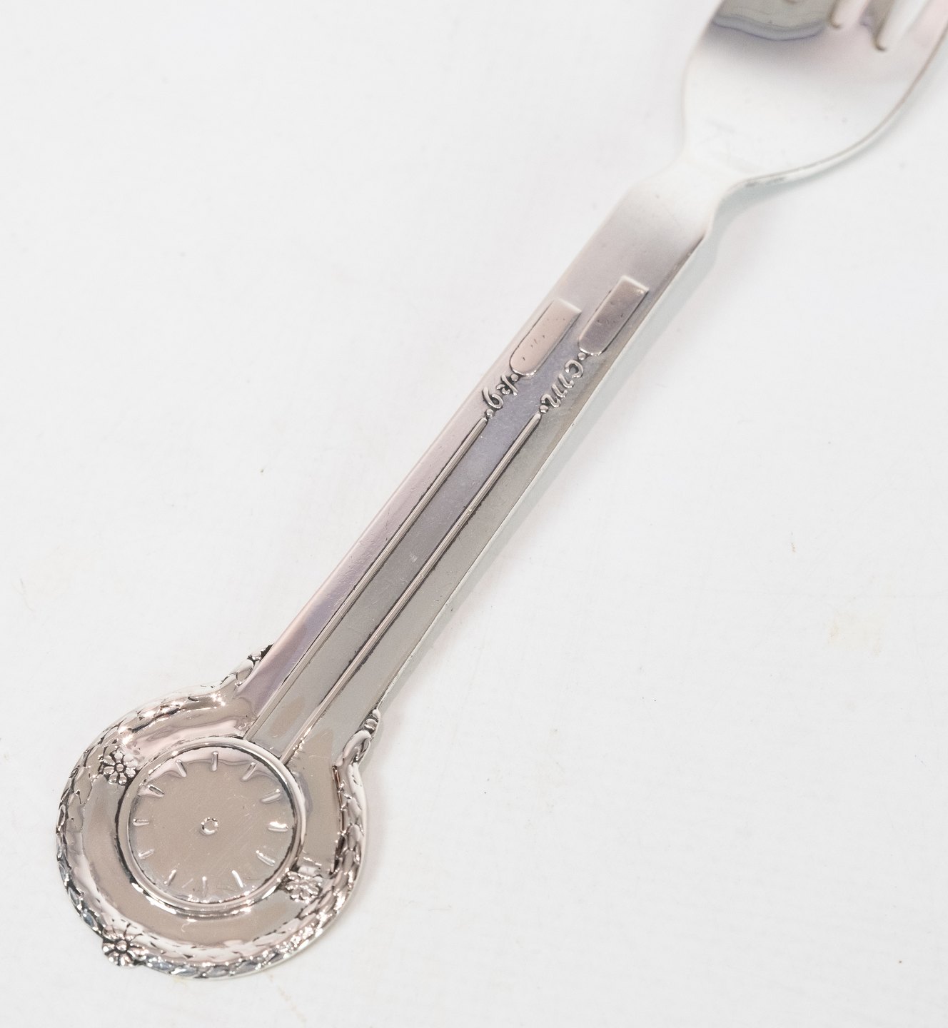 SoldChildren's fork decorated with clock of hallmarked silver.