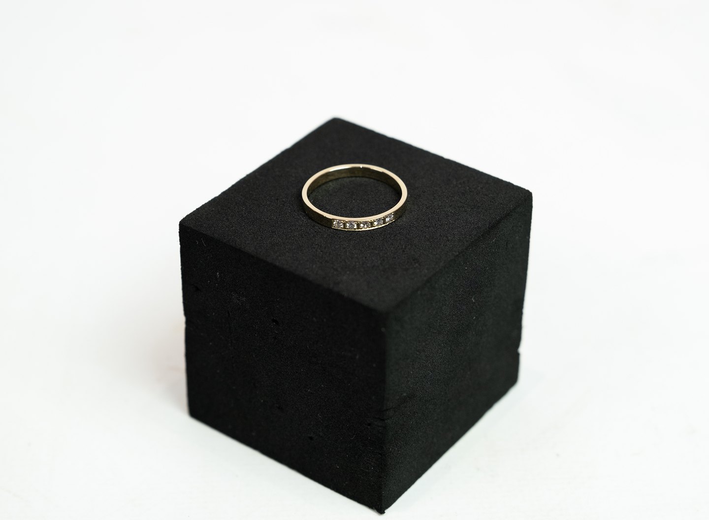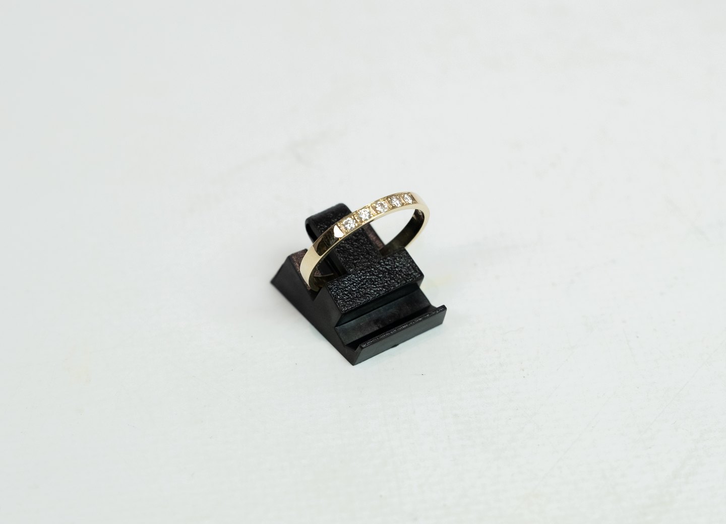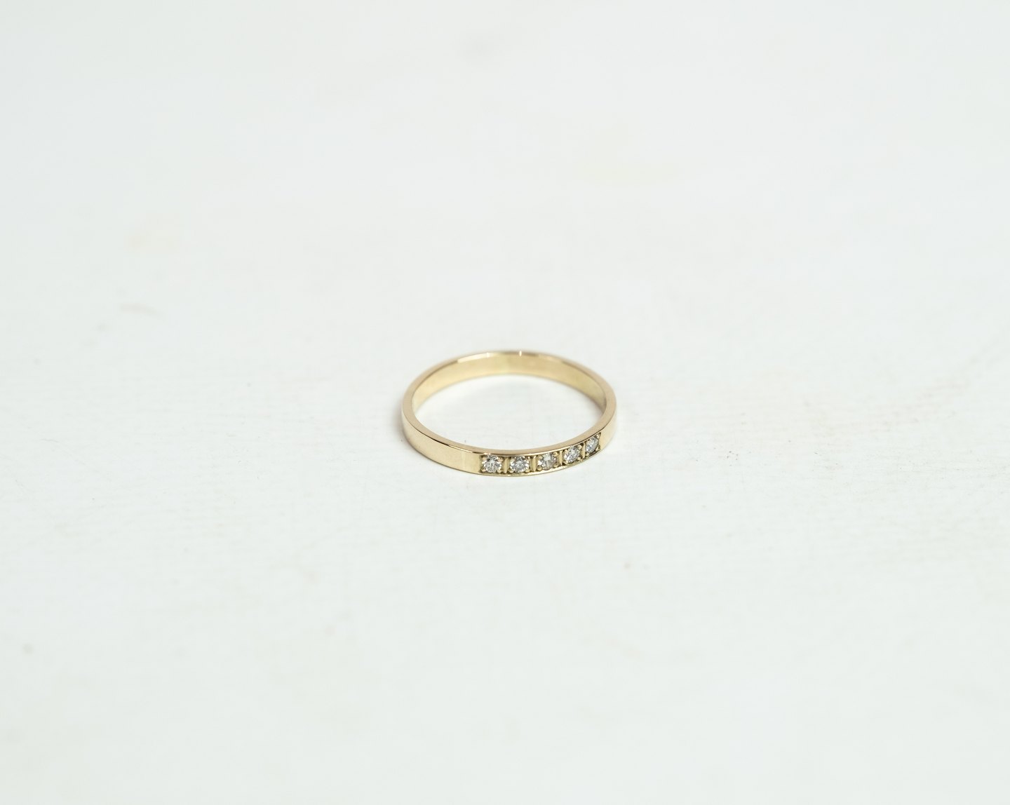 Alliance ring of 14 carat gold decorated with 5 smaller diamonds.