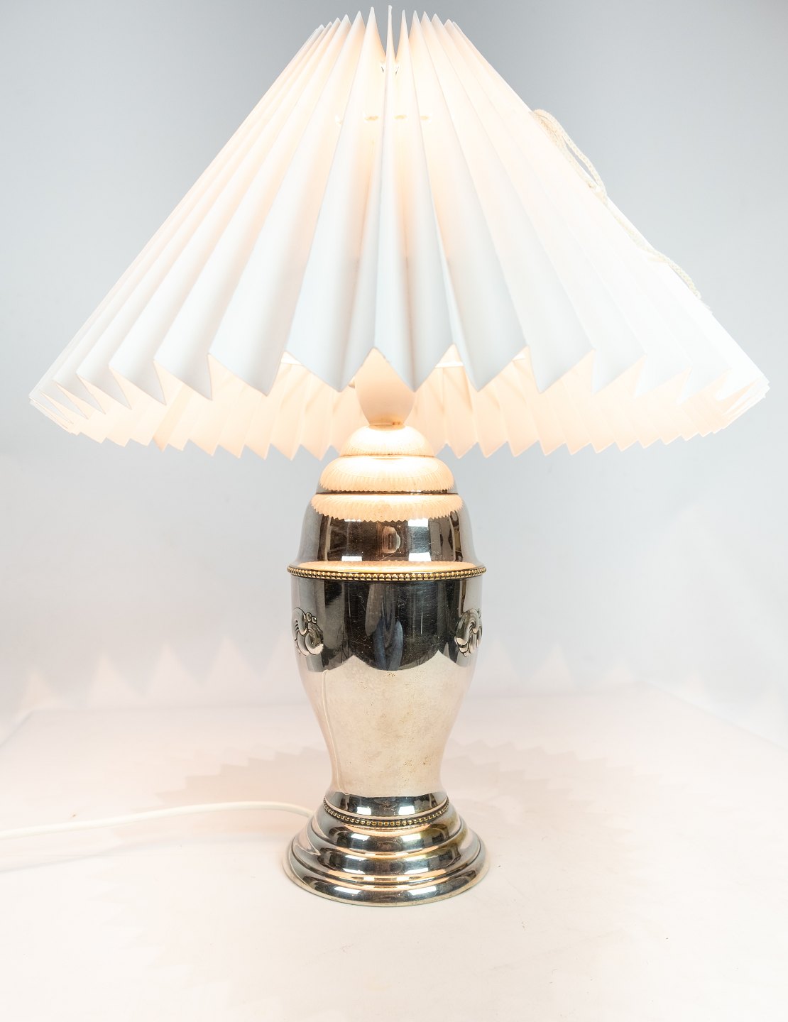 Forsølvet bordlampe i jugendstil fra omkring 1930erne.