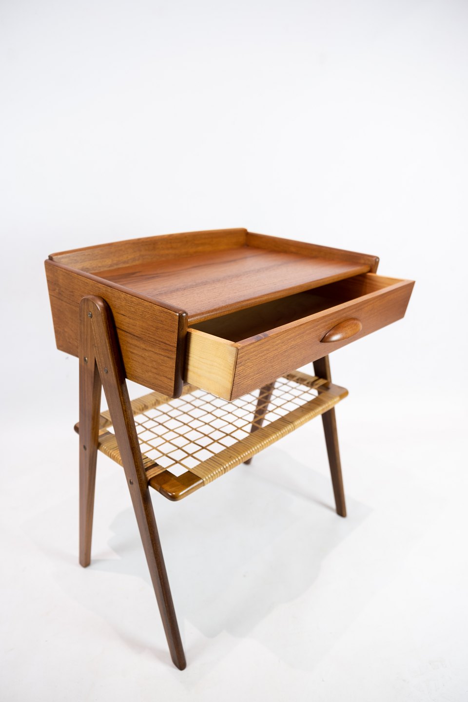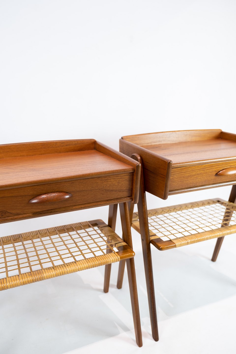 SoldA pair of side tables in teak with paper cord shelf of danish design from the 1960s. The tables are in great vintage condition.
