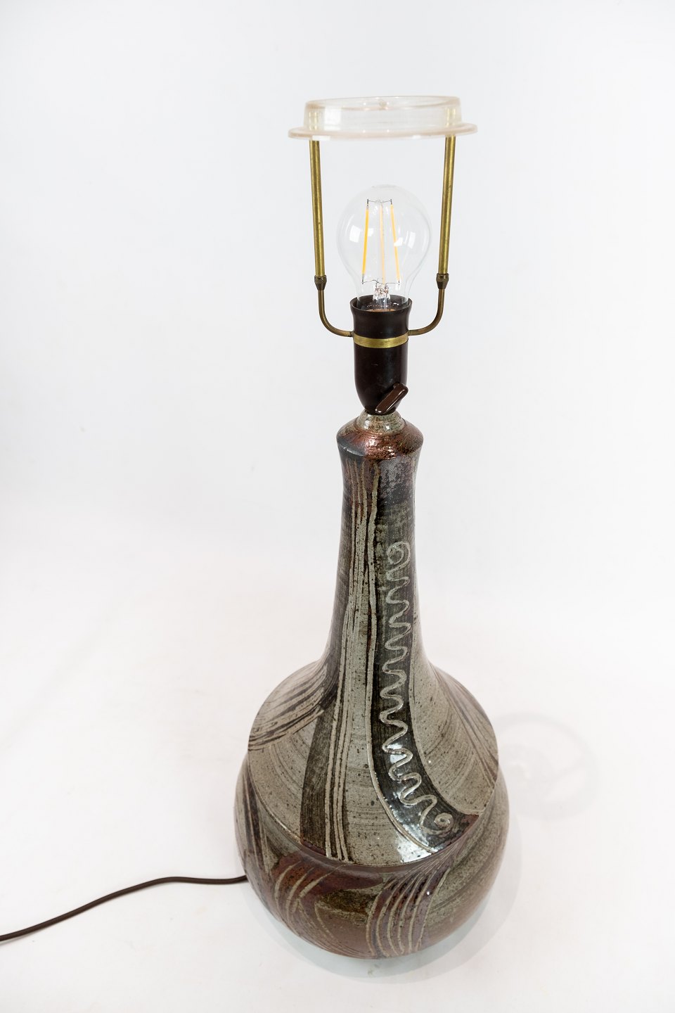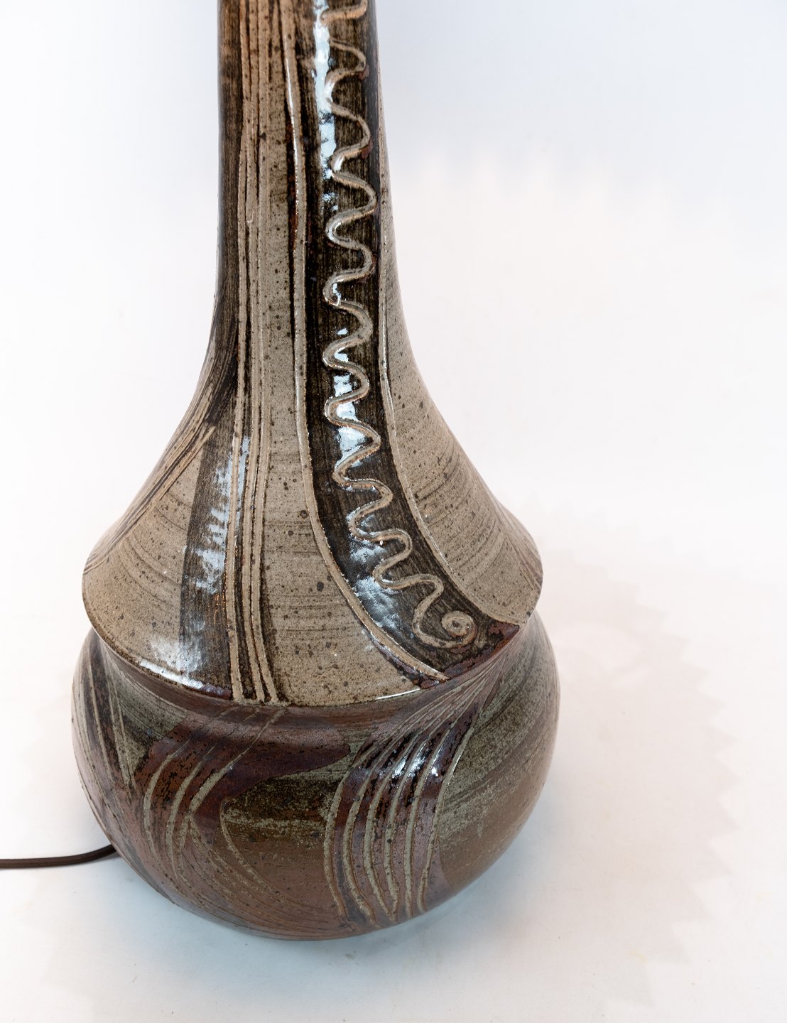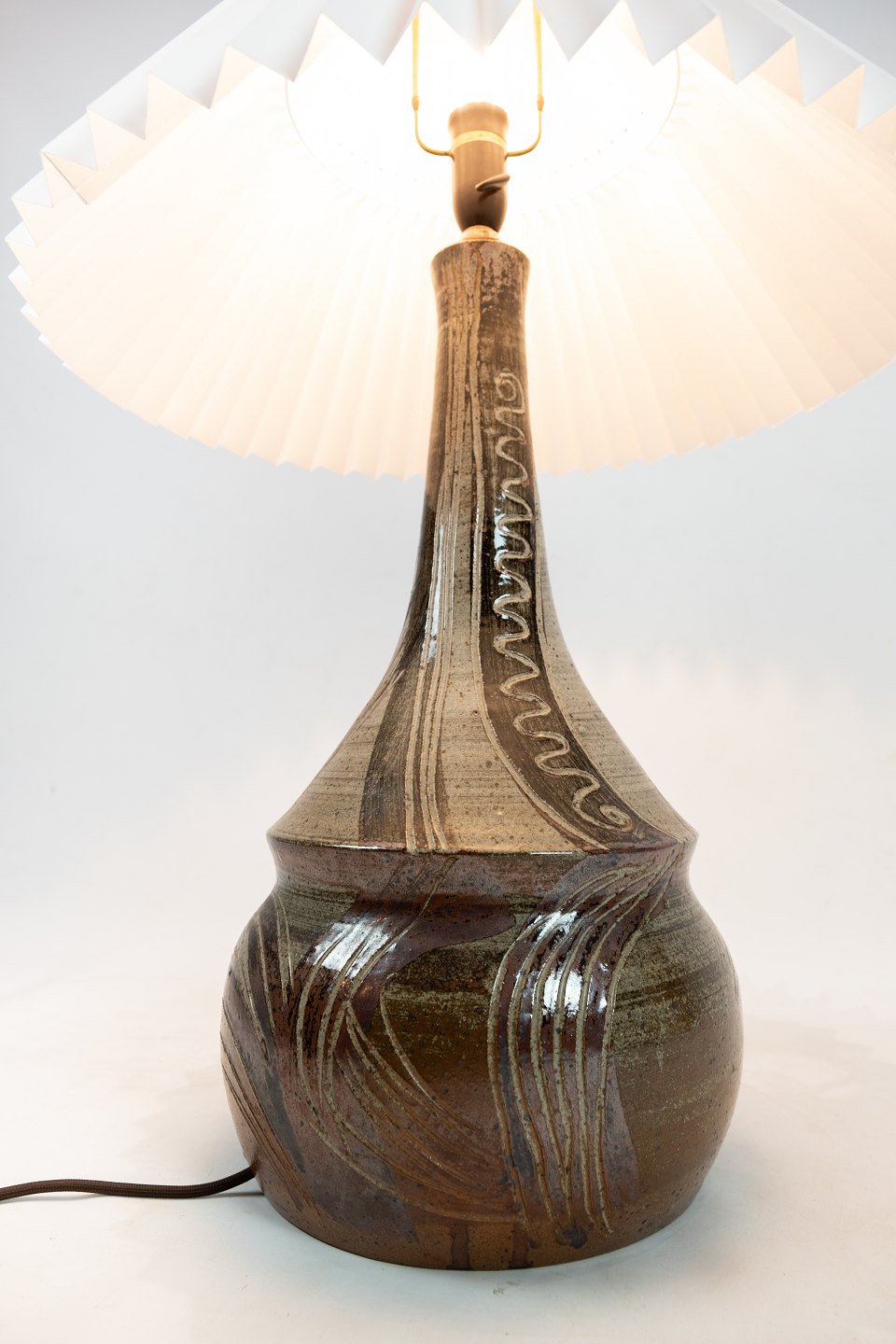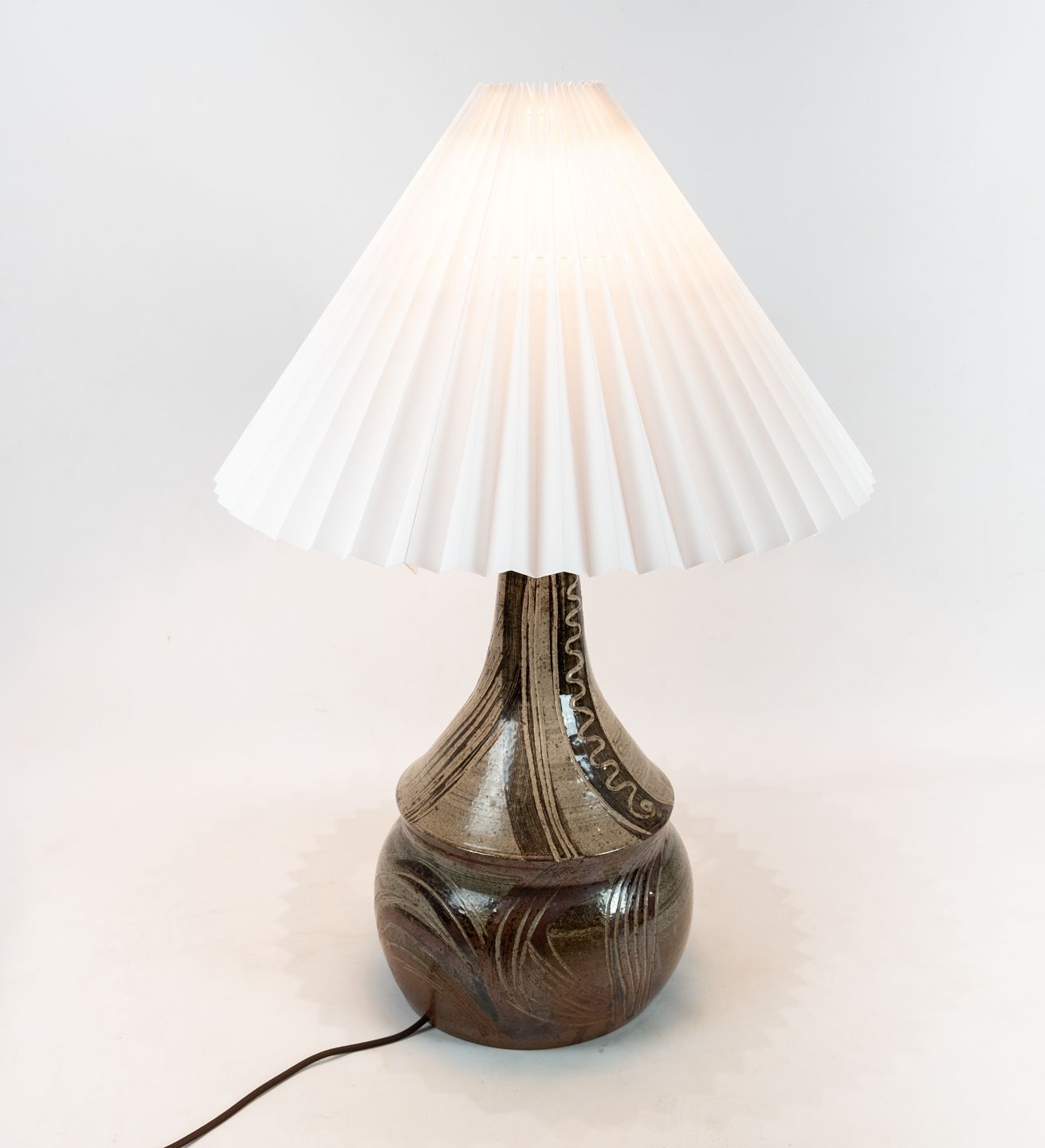 Ceramic table lamp of danish design from the 1960s. The shade is hand folded and hand painted in paper.