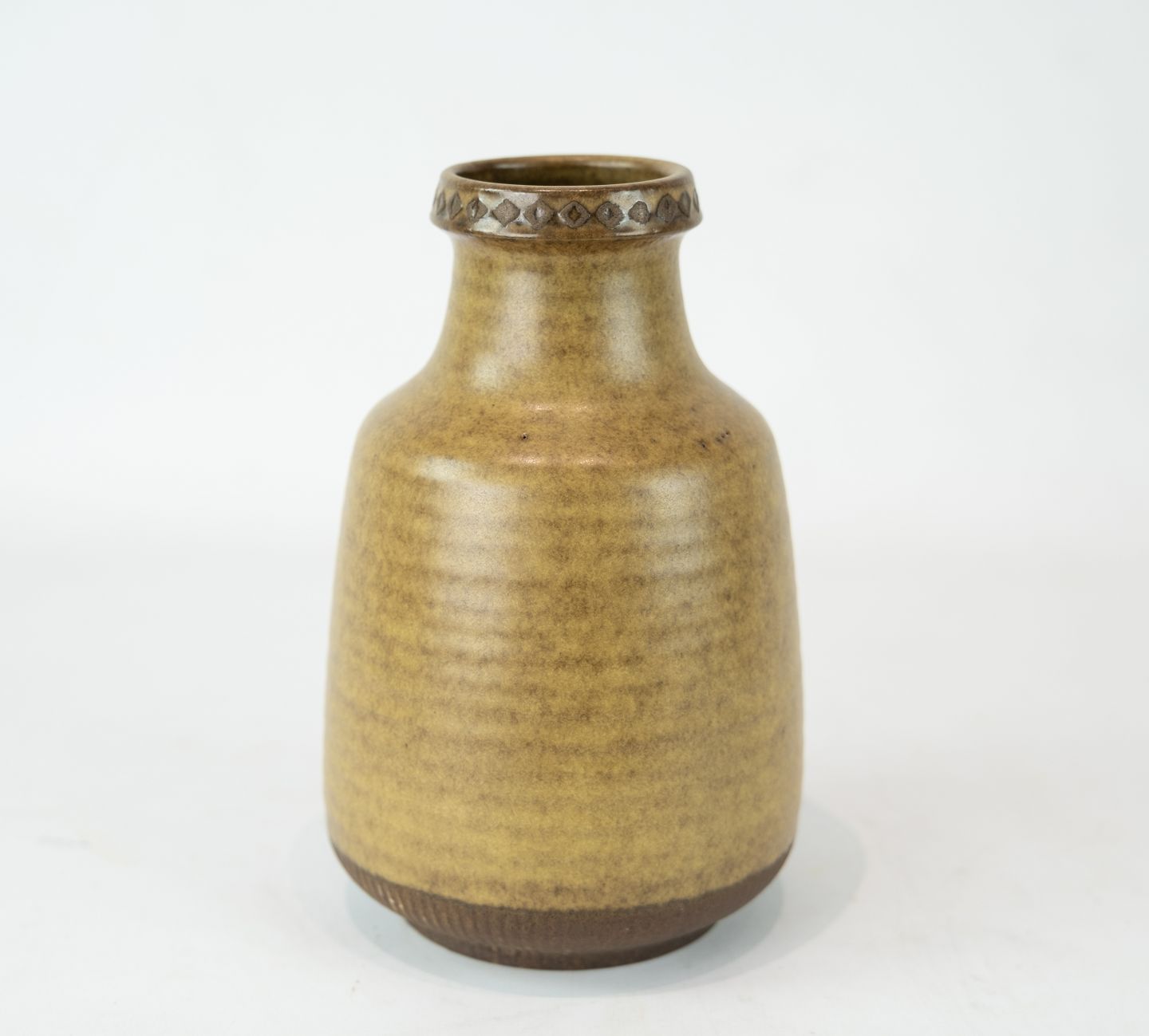 SolgtKeramik vase i brune og beige farver af Gunnar Nylund for Rörstrand.