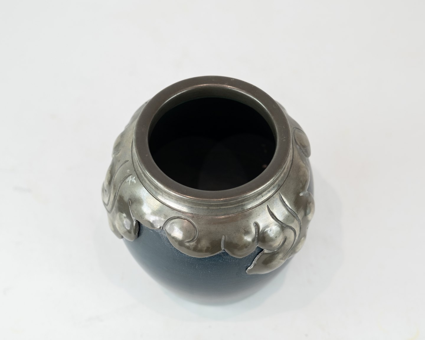 SoldCeramic vase in dark blue decorated with metal edge by Ibsen Enke.