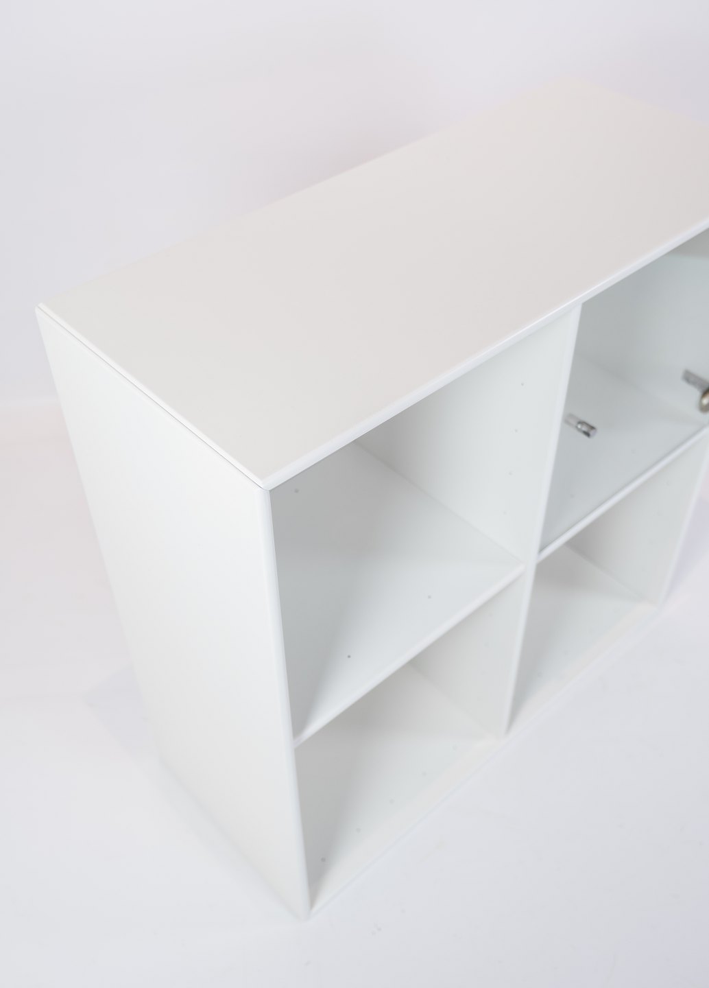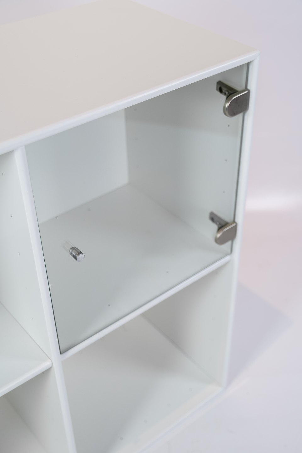 White Montana module with four large rooms and one glass door, designed by Peter J. Lassen.