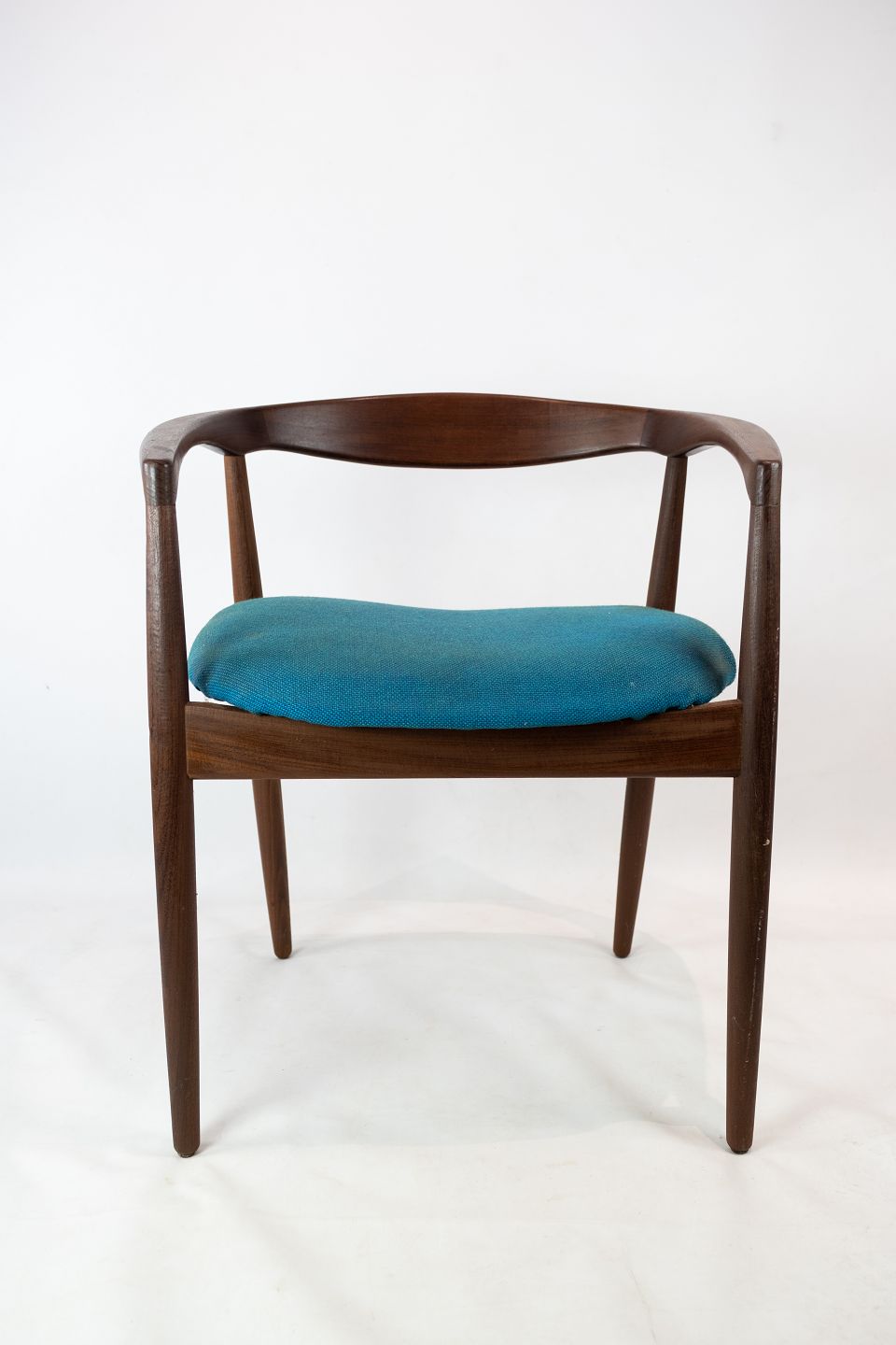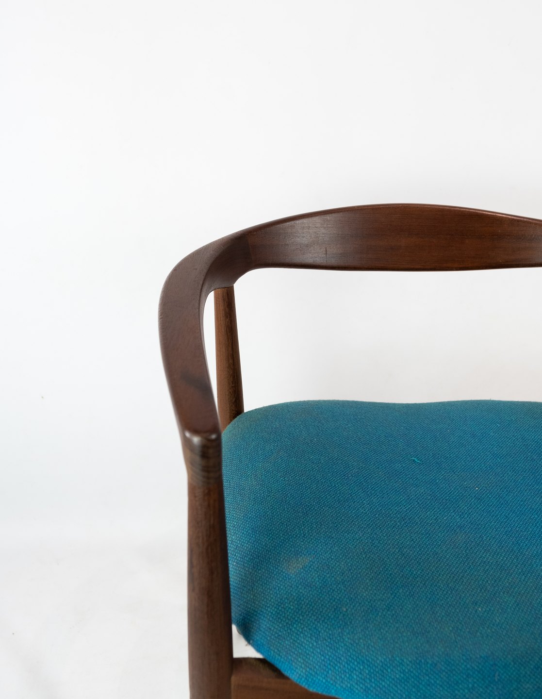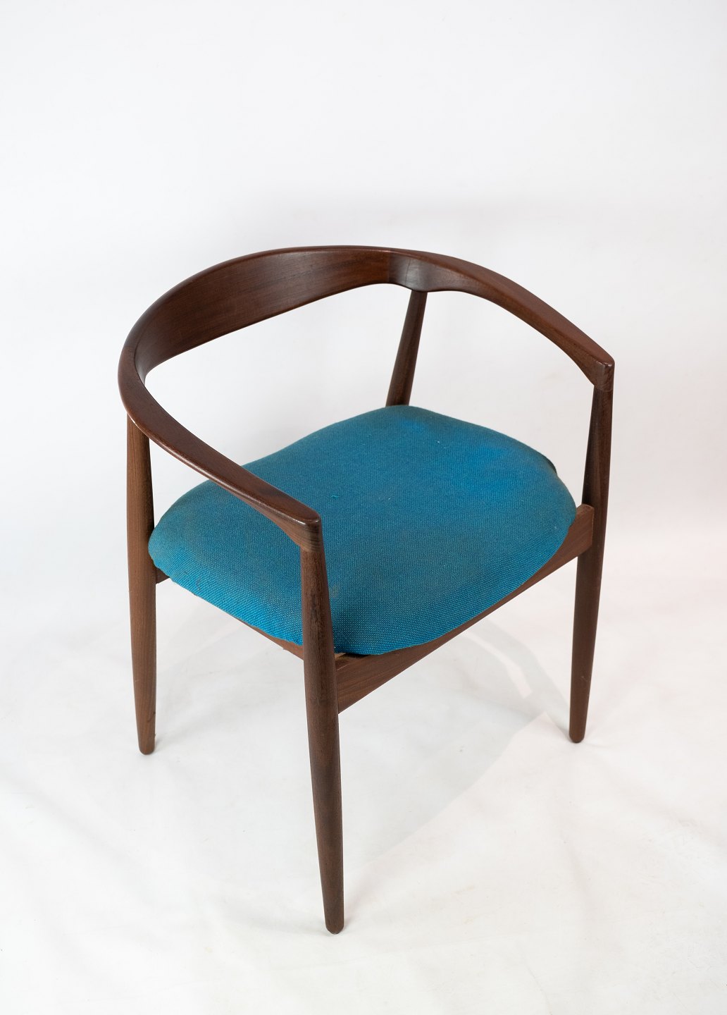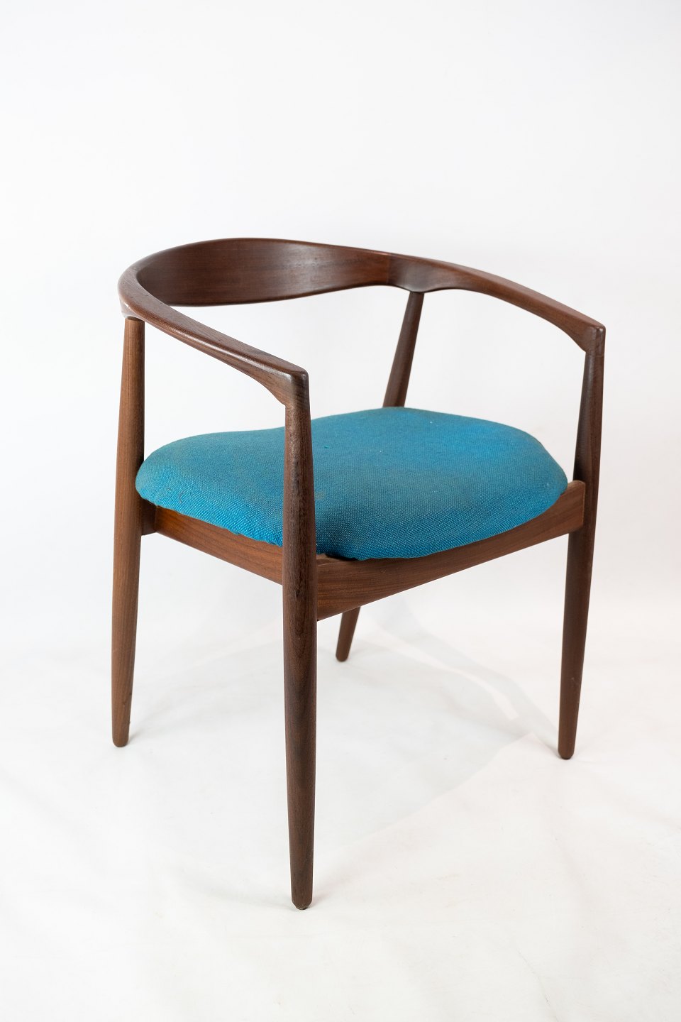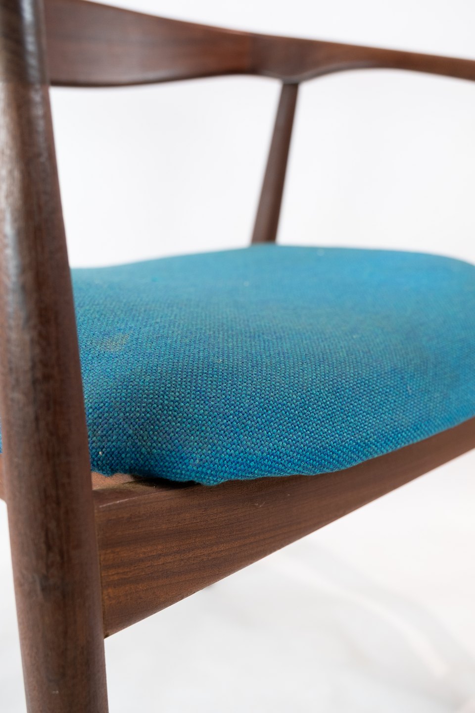 SolgtArmstol i palisander, model Troja, polstret med blåt stof designet af Kai Kristiansen fra 1960erne. Stolen er i flot brugt stand.