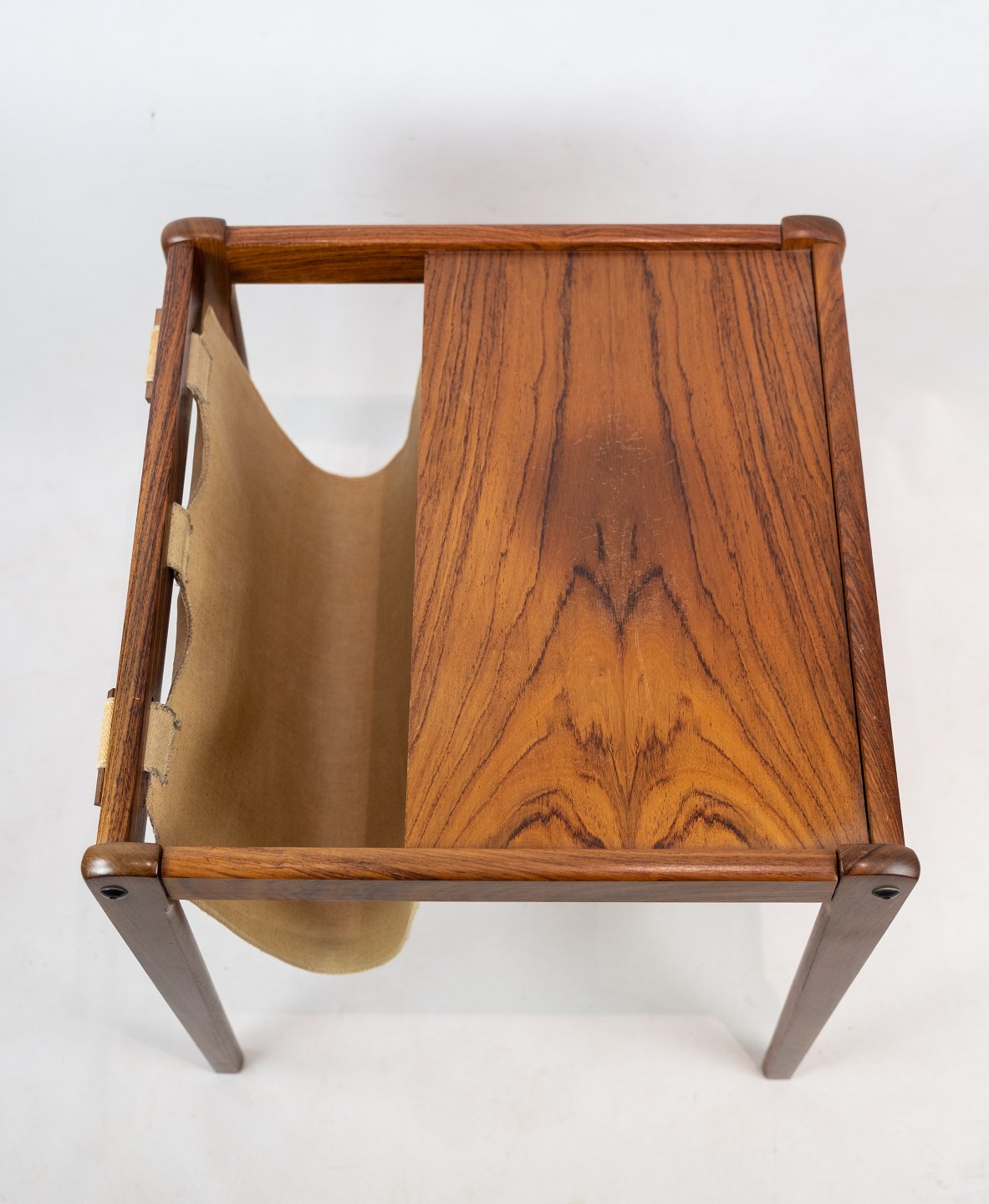 Small newspaper holder/lamp table i rosewood of Danish design from the 1960s. The table is in great vintage condition.