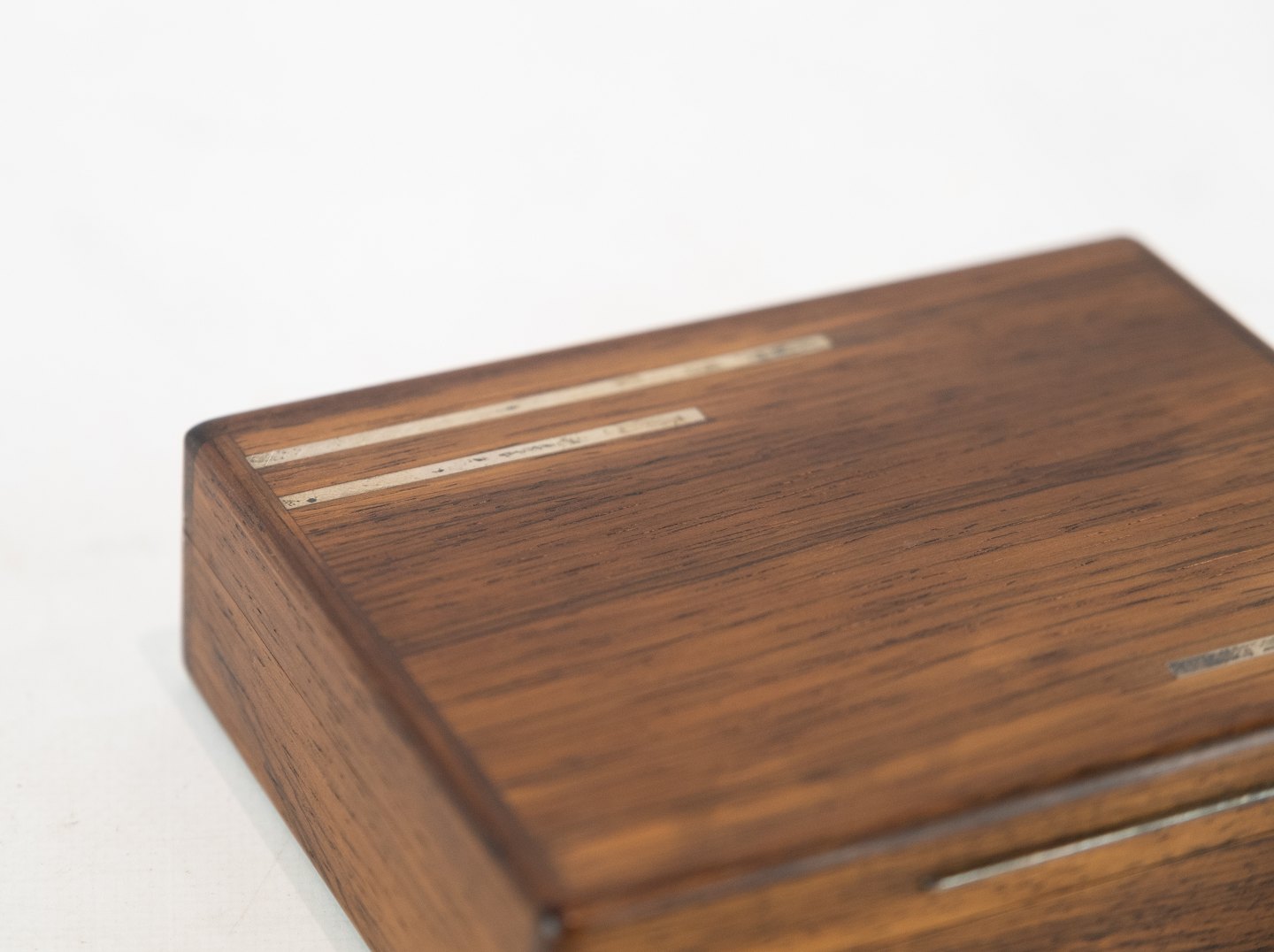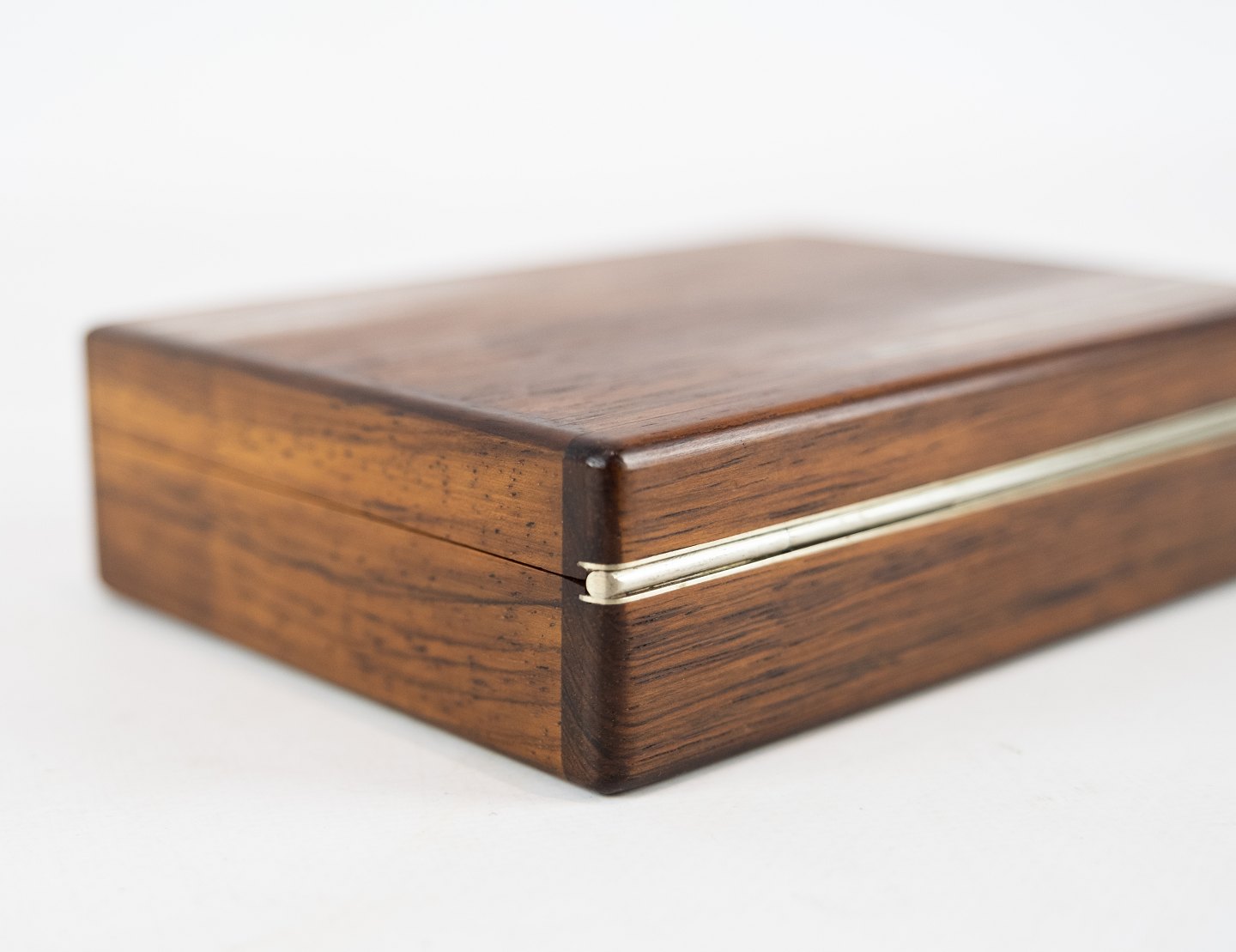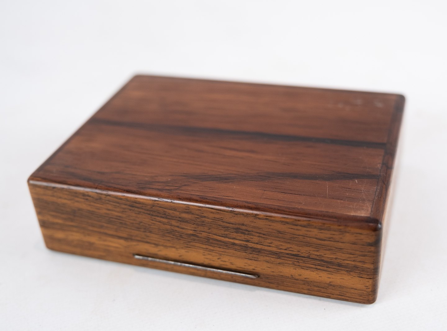 Box in simpel design of rosewood and inlaid metal from the 1960s.