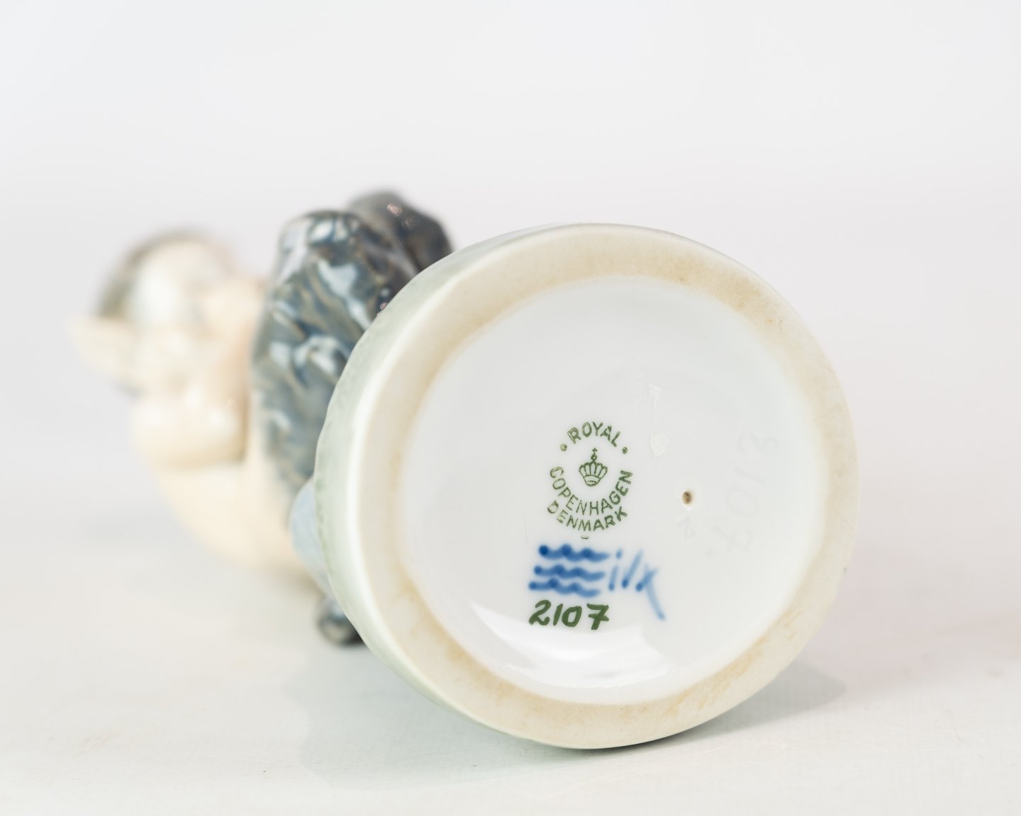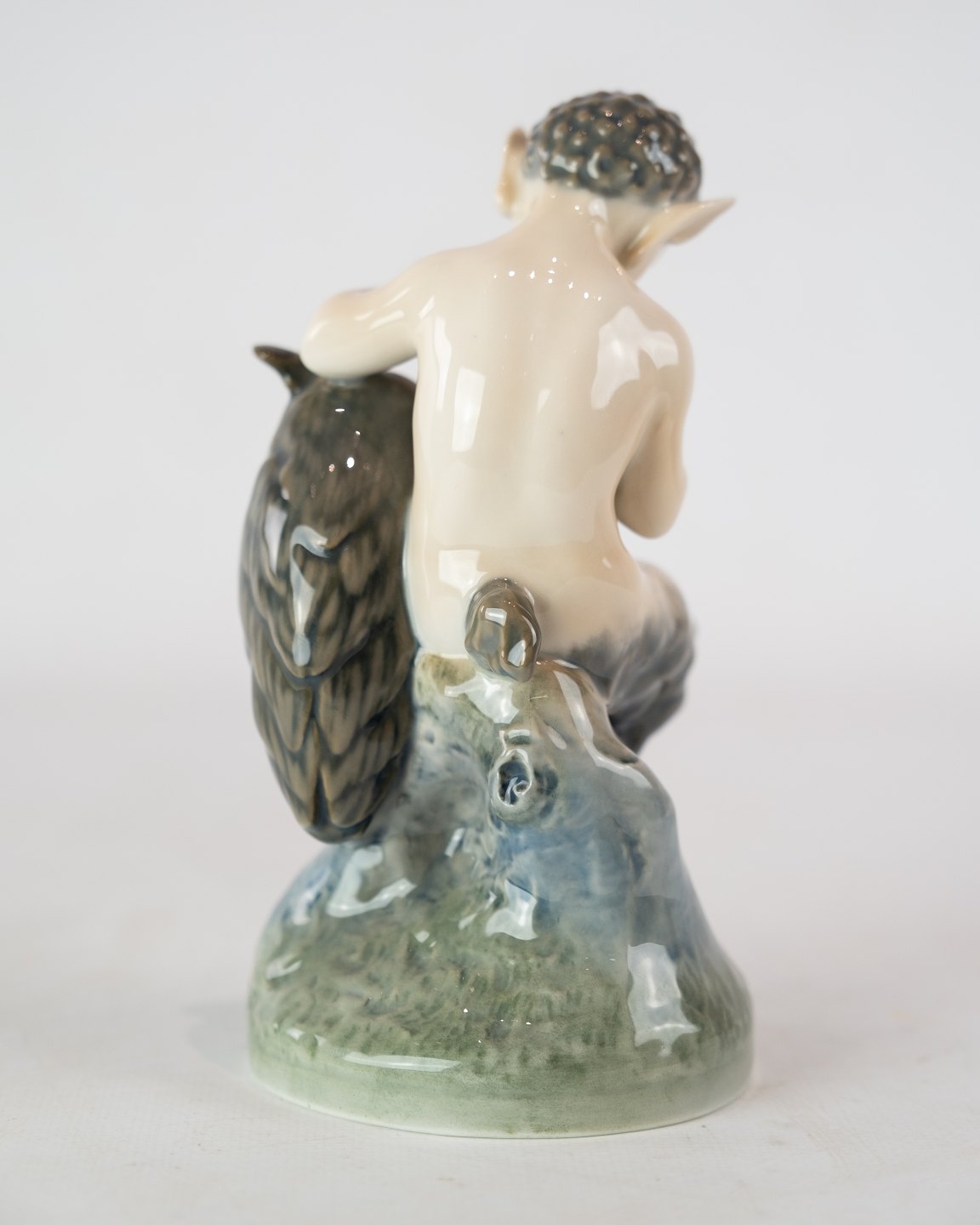 SolgtKgl. porcelæn Pan figur med ugle, nr.: 2107 af Royal Copenhagen.