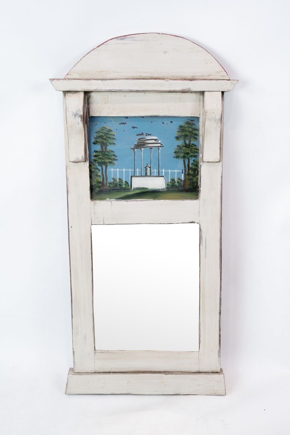 SoldSmall grey painted gustavian mirror from 1810. The mirror is decorated with a small painting.