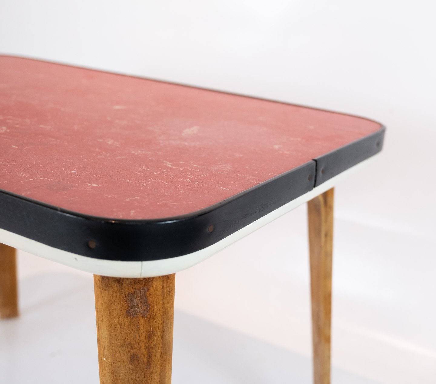 Side table with red laminate of danish design from the 1960s. The table is in great vintage condition.