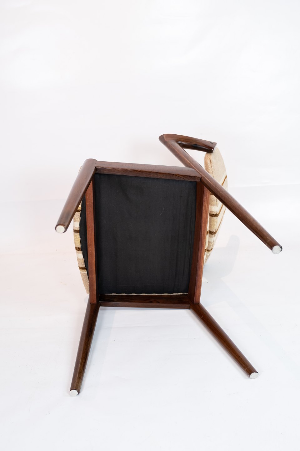 SoldA set of 4 dining chairs, model 42, designed by Kai Kristiansen and manufactured by Schou Andersen in the 1960s. The chairs are of rosewood and upholstered in light striped wool fabric.