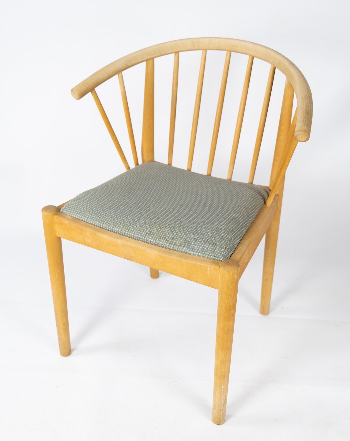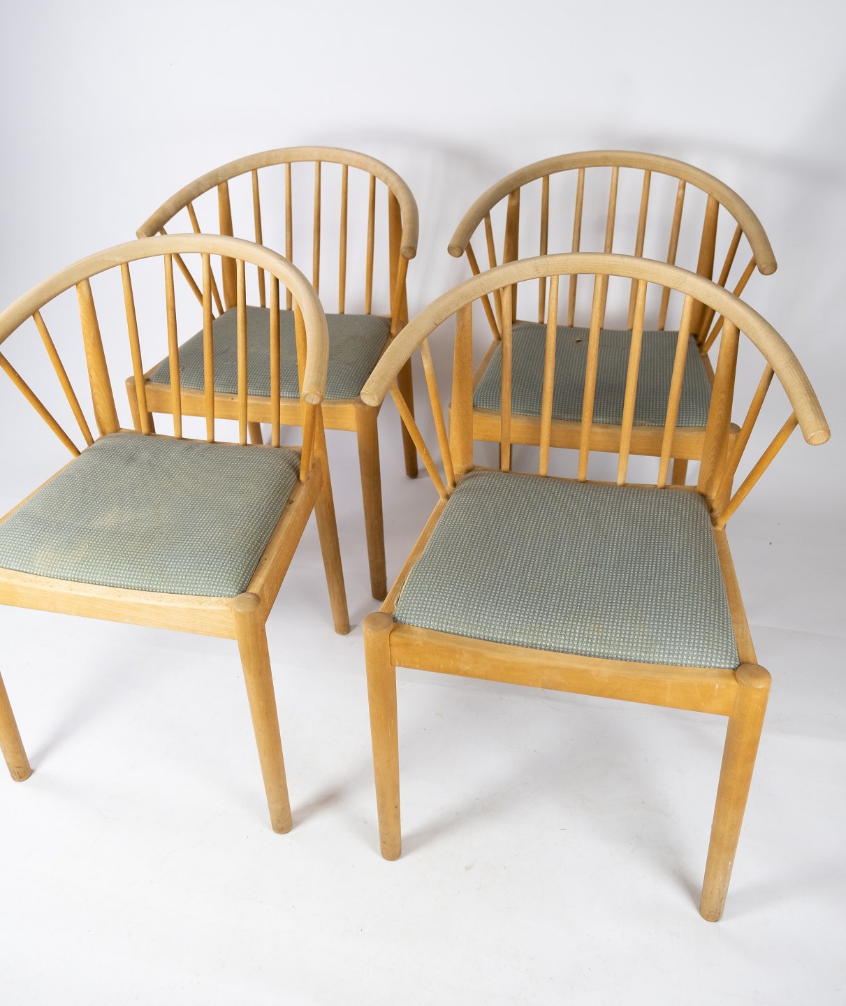 SolgtSæt af fire spisestuestole i sæbebehandlet bøg af dansk design fra 1960erne. Stolene kan ompolstres hvis ønsket.