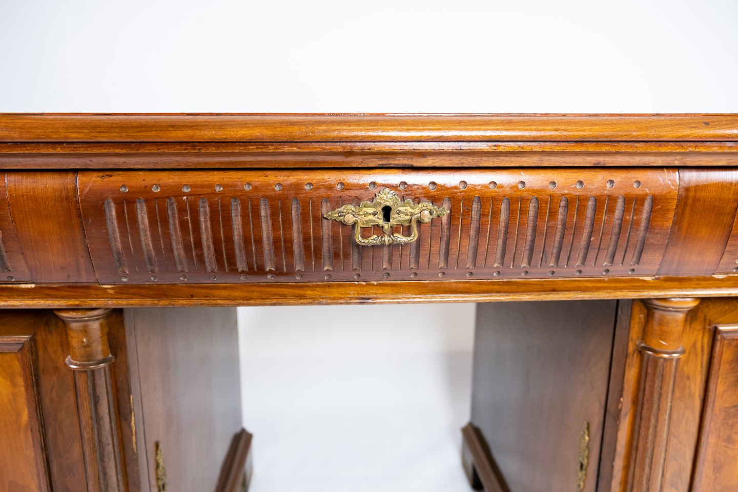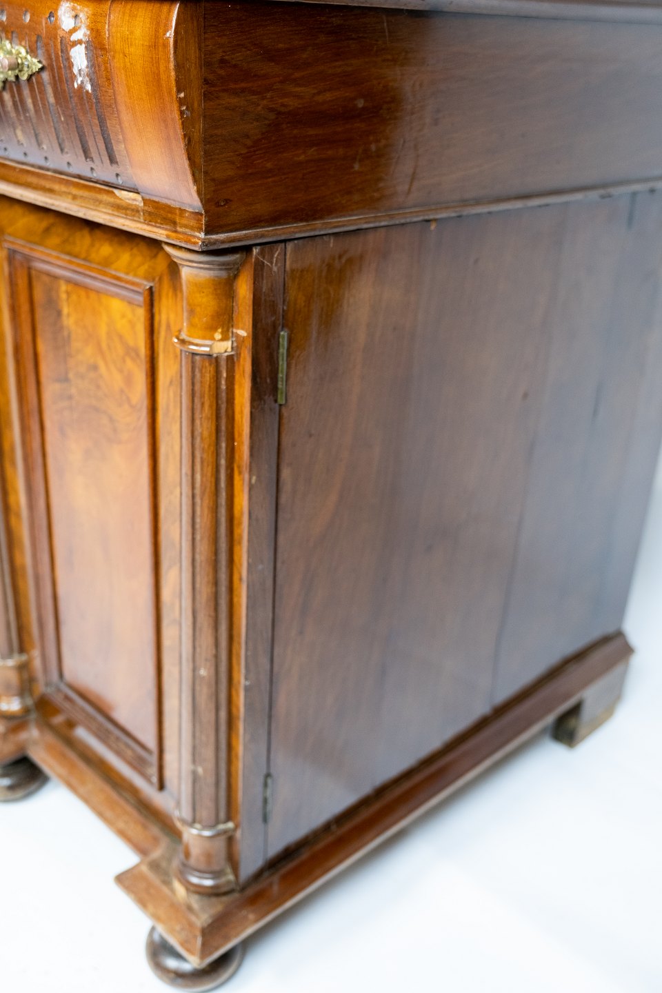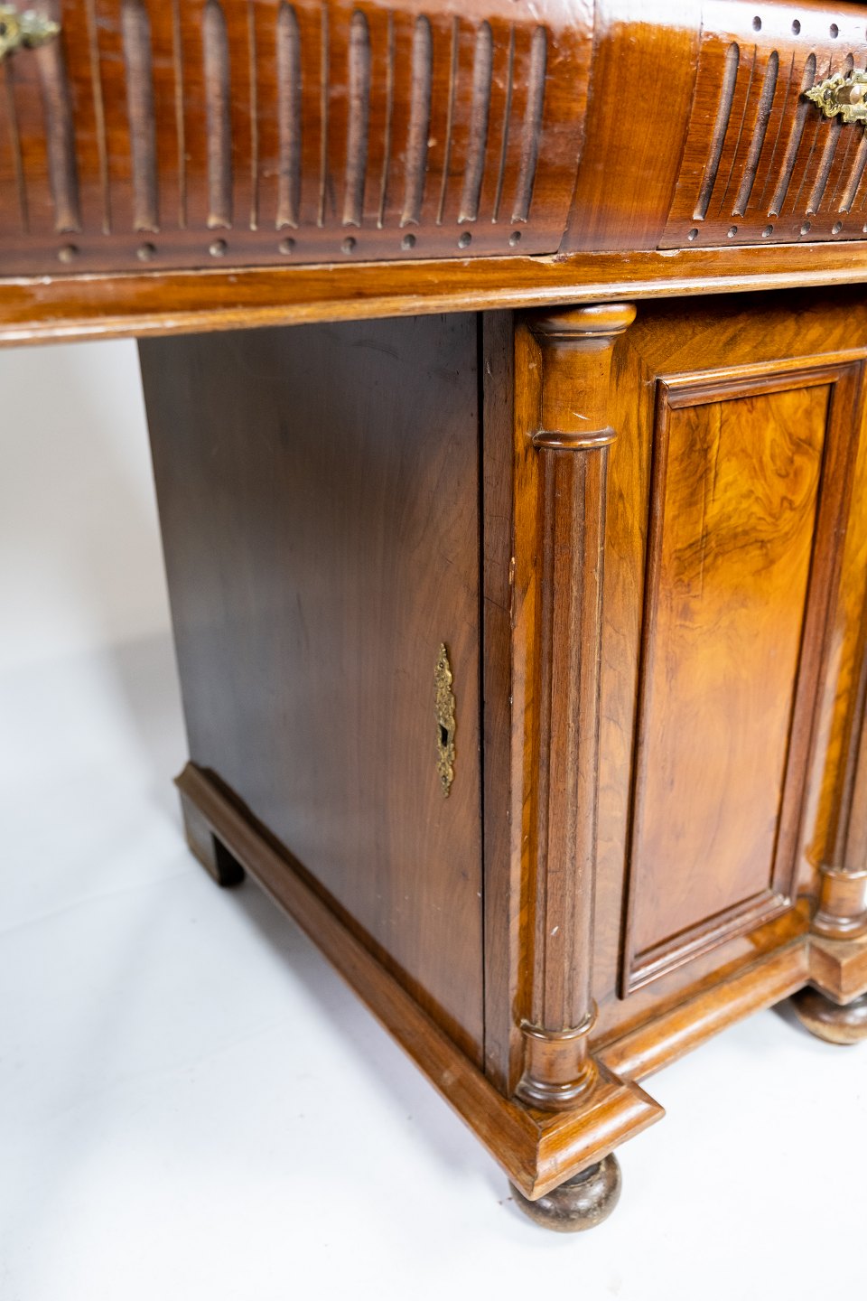 SolgtStort antikt kasse skrivebord af nøddetræ fra 1890erne.
