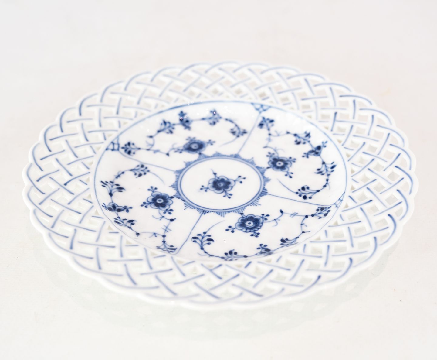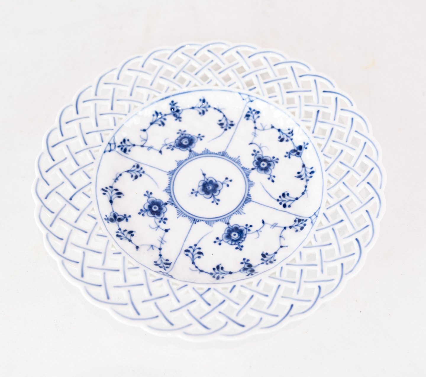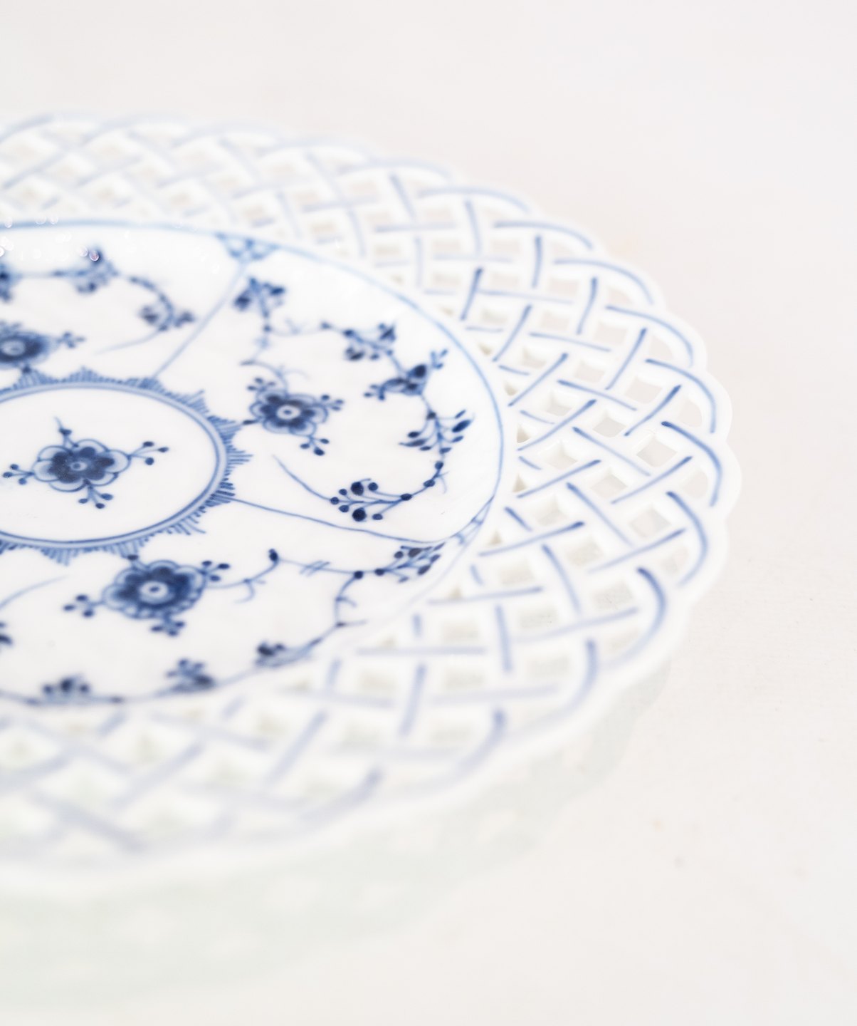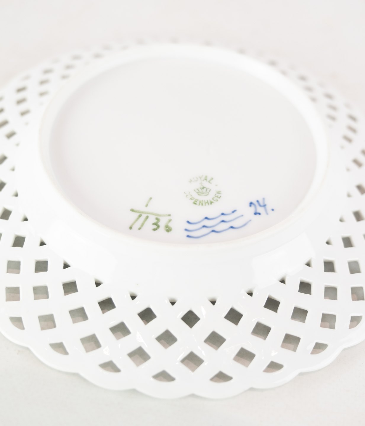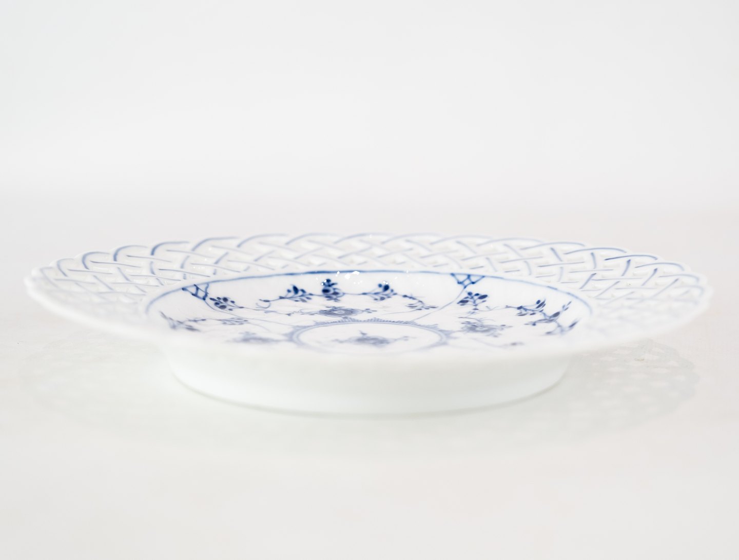 SolgtKgl. musselmalet riflet tallerken med gennembrudt kant, nr.: 1/1136.