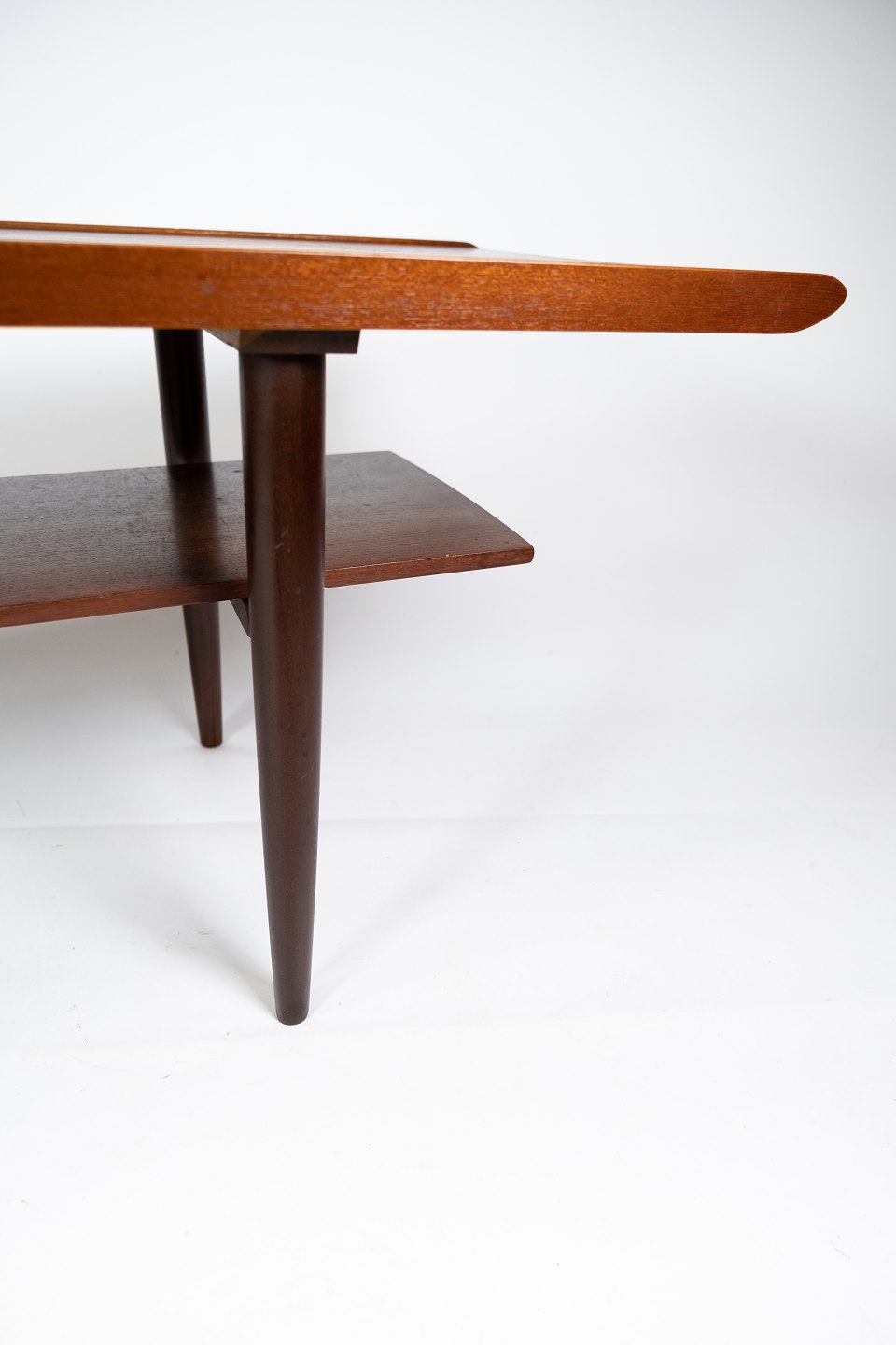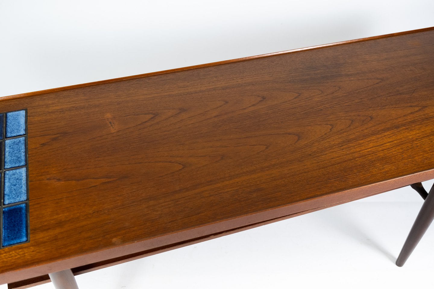 SolgtSofabord i teak med blå klinker af dansk design fra 1960erne. Bordet er i flot brugt stand.