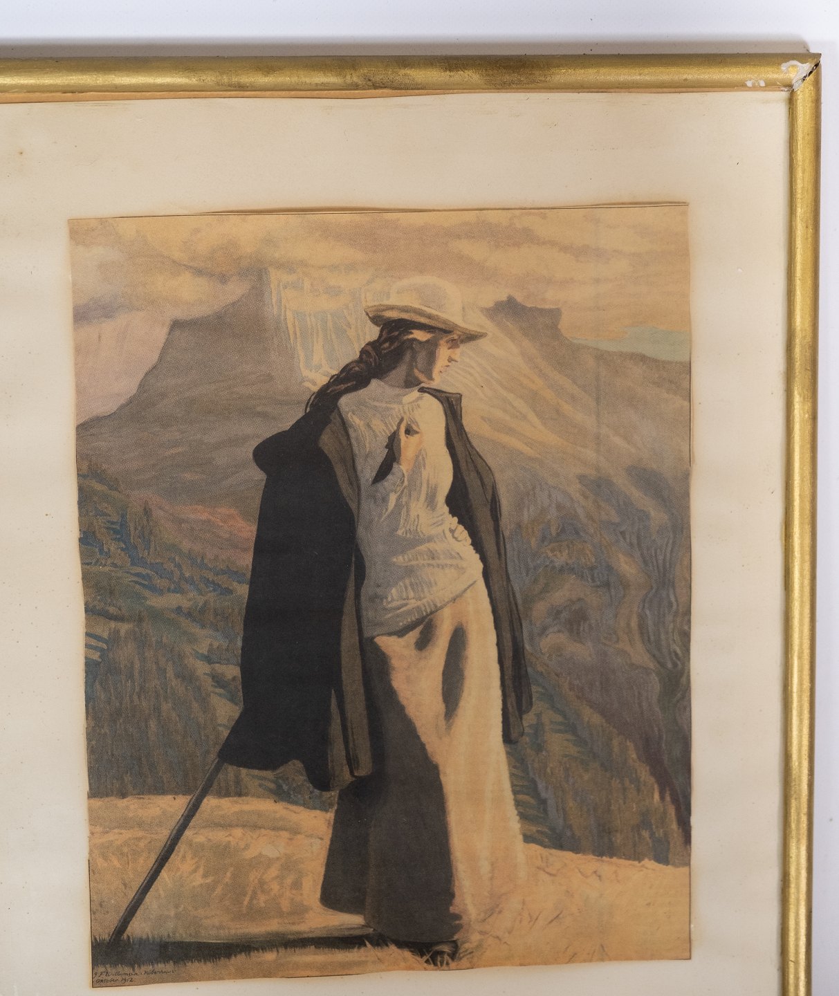 Print called mountain climber with gilded frame by J. F. Willumsen.