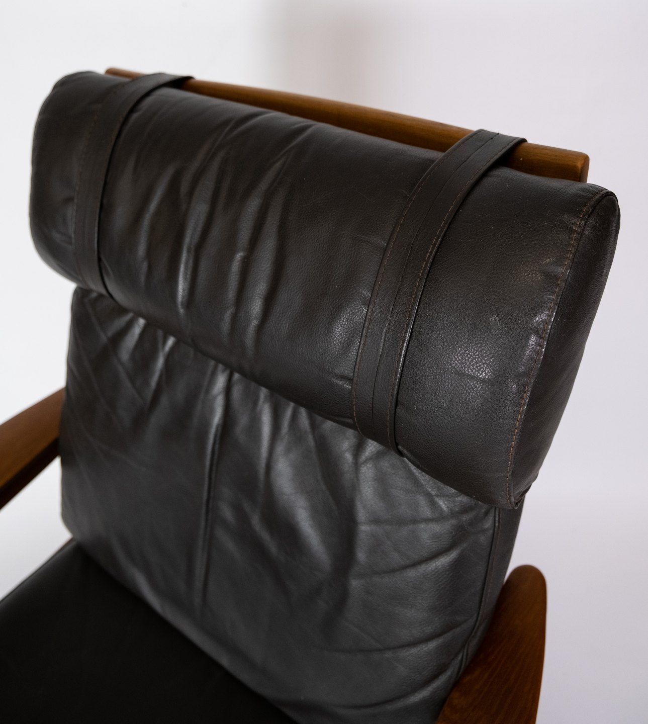 The chair and the stool are both made of first-class teak wood, which radiates warmth and elegance. The padded black leather adds both comfort and luxury to the set and creates a harmonious contrast with the natural wood.