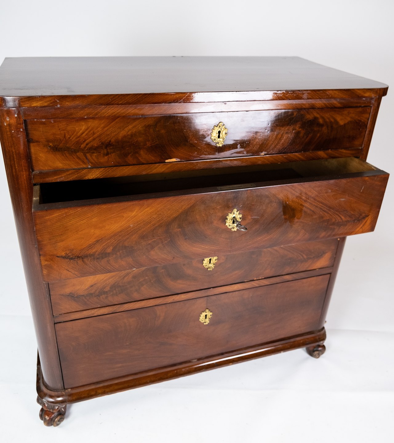 SoldChest of drawers of mahogany with four drawers in great antique condition from the 1860s.