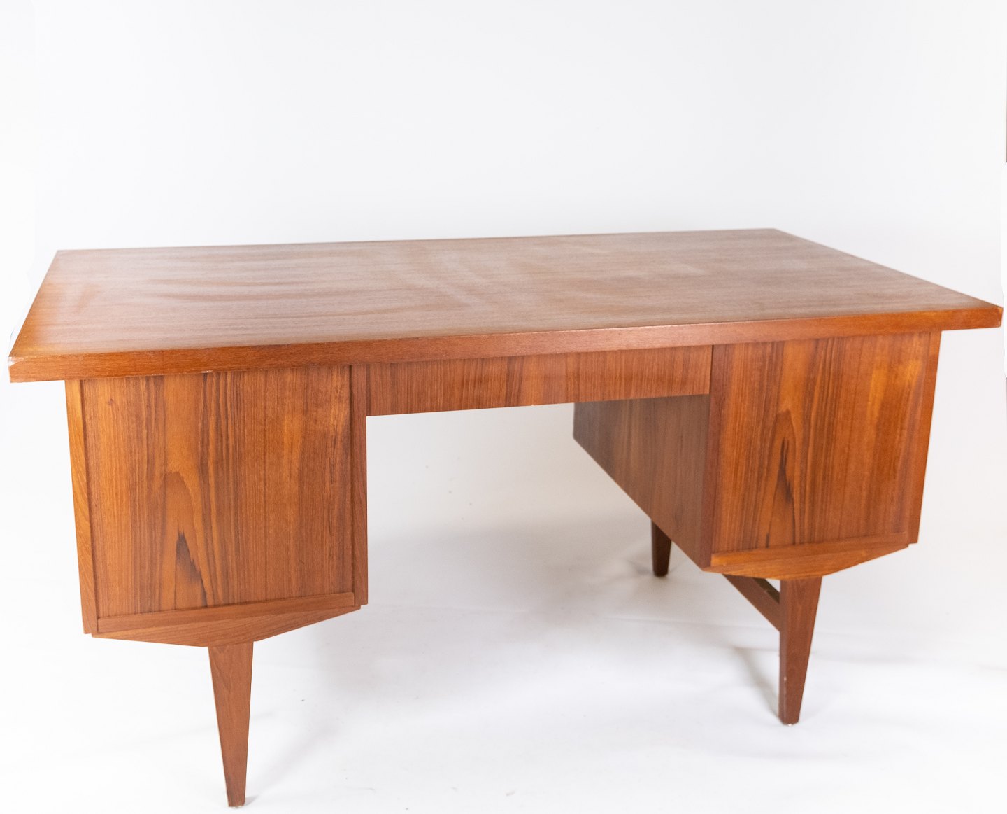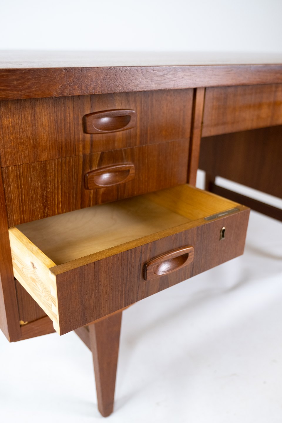 SolgtSkrivebord i teak af dansk design fra 1960erne. Bordet er i flot brugt stand.