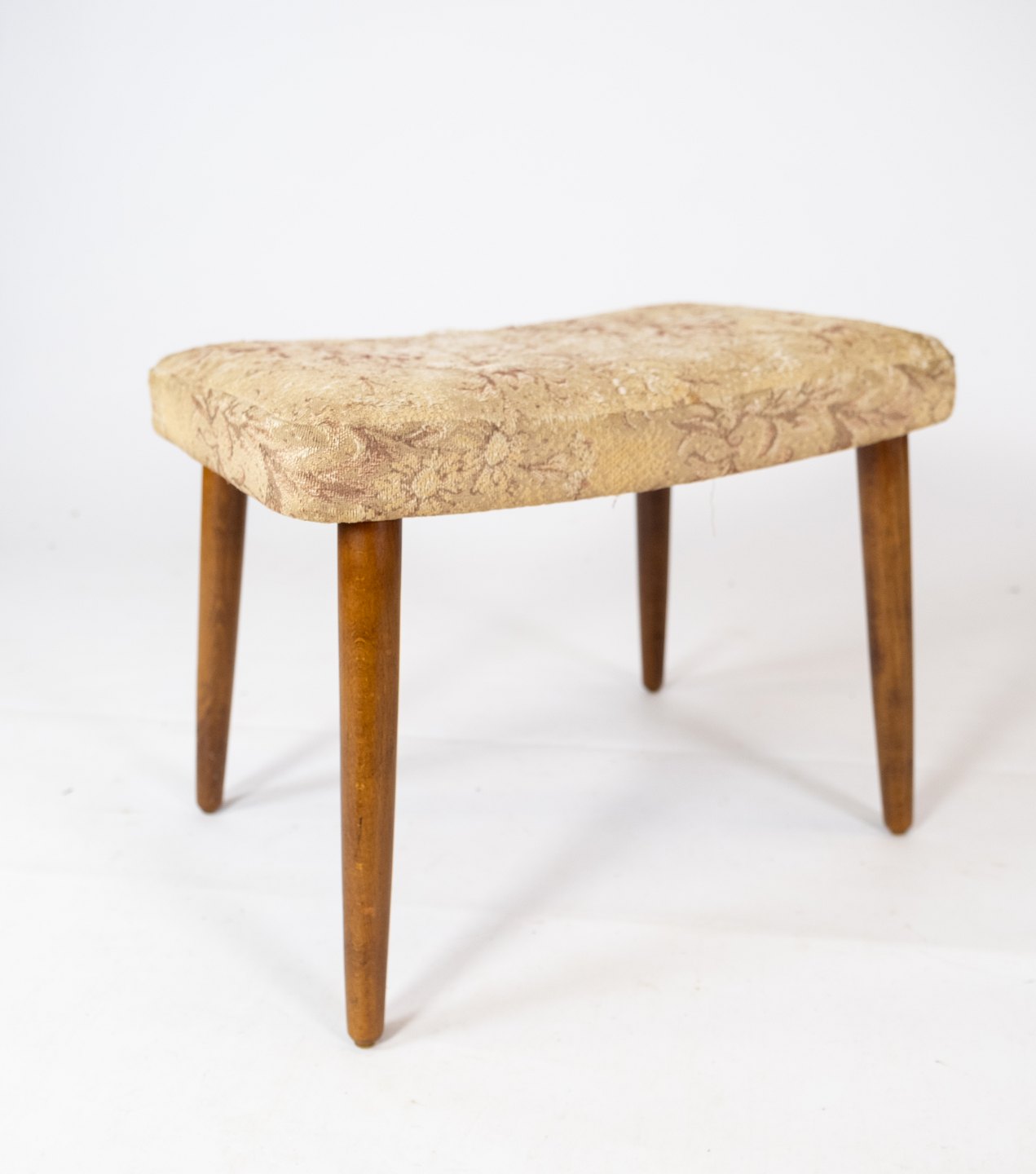 Skammel - Teak - Blomstret Stof - Dansk Design - 1970