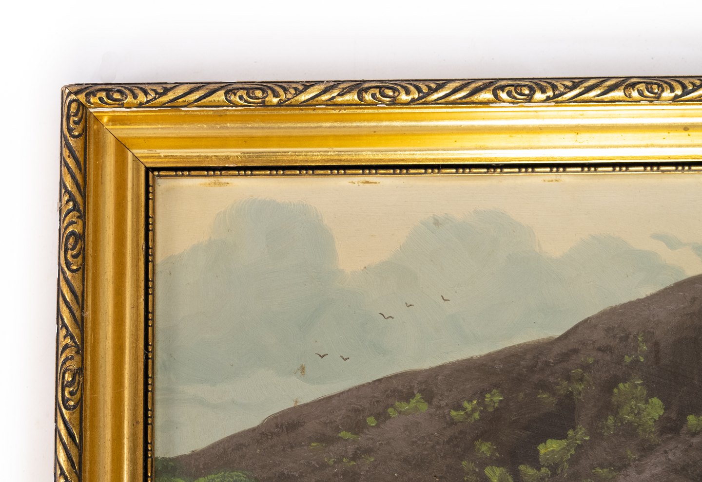 Oil painting with nature motif and gilded frame, signed C.B. from the 1930s.