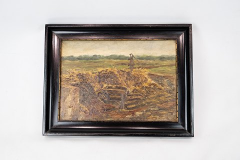 Oliemaleri med blomster motiv og forgyldt ramme, signeret A.T. fra 1946.