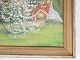 SolgtOliemaleri med motiv af kirsebærtræ og med forgyldt ramme, malet af Carl Lundblad (1903-1983) fra 1957.