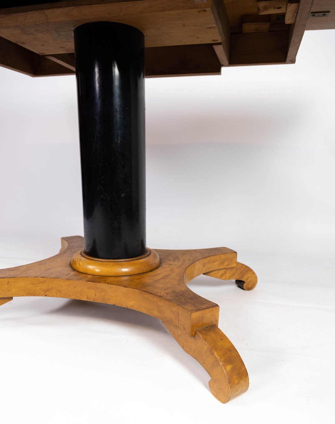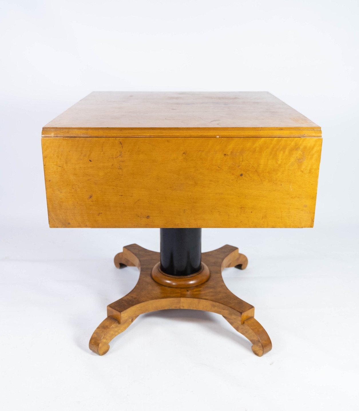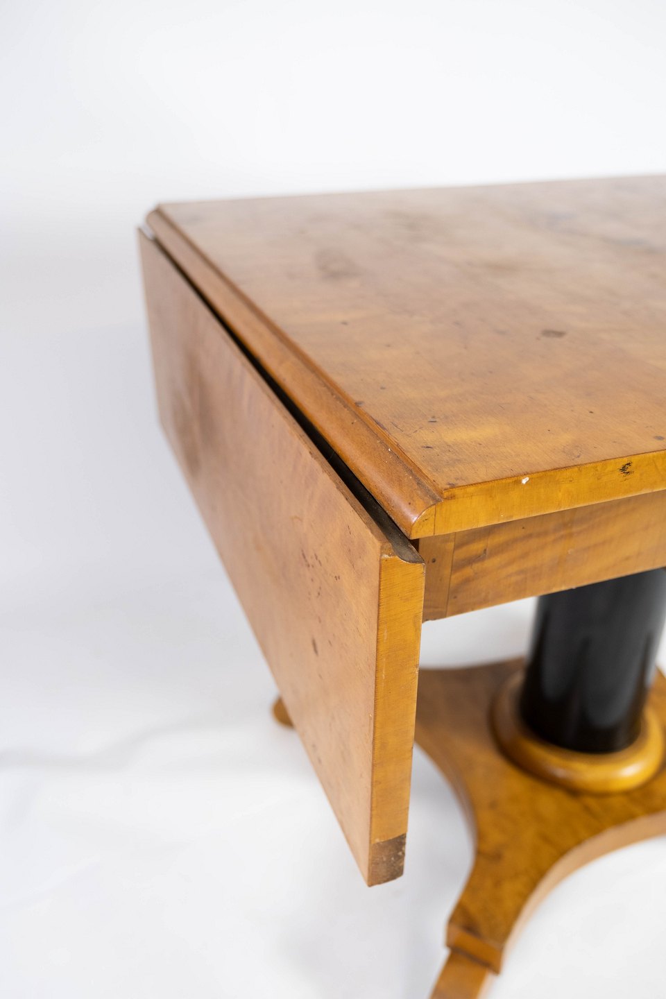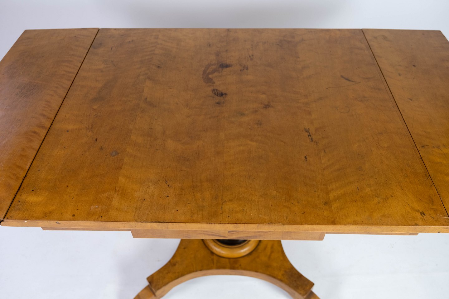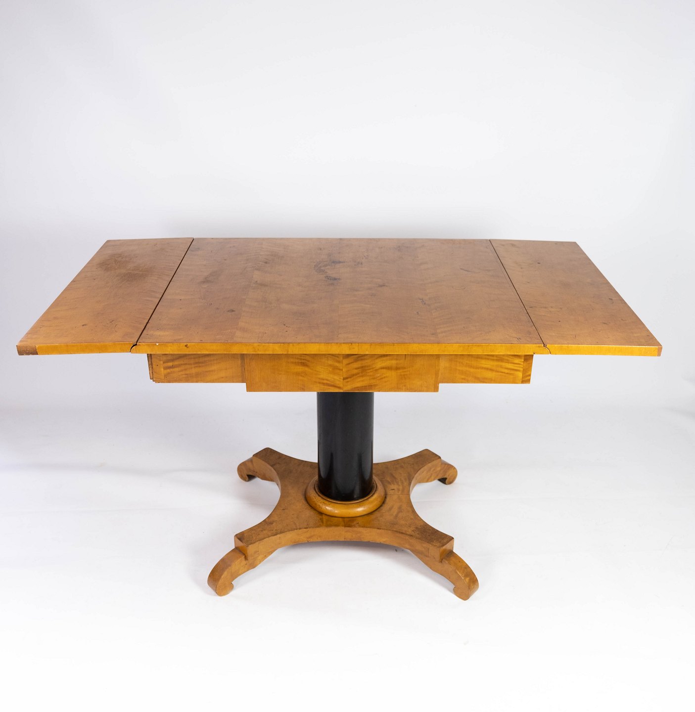 Dining table with extentions of polished birch wood, in great antique condition from the 1840s.