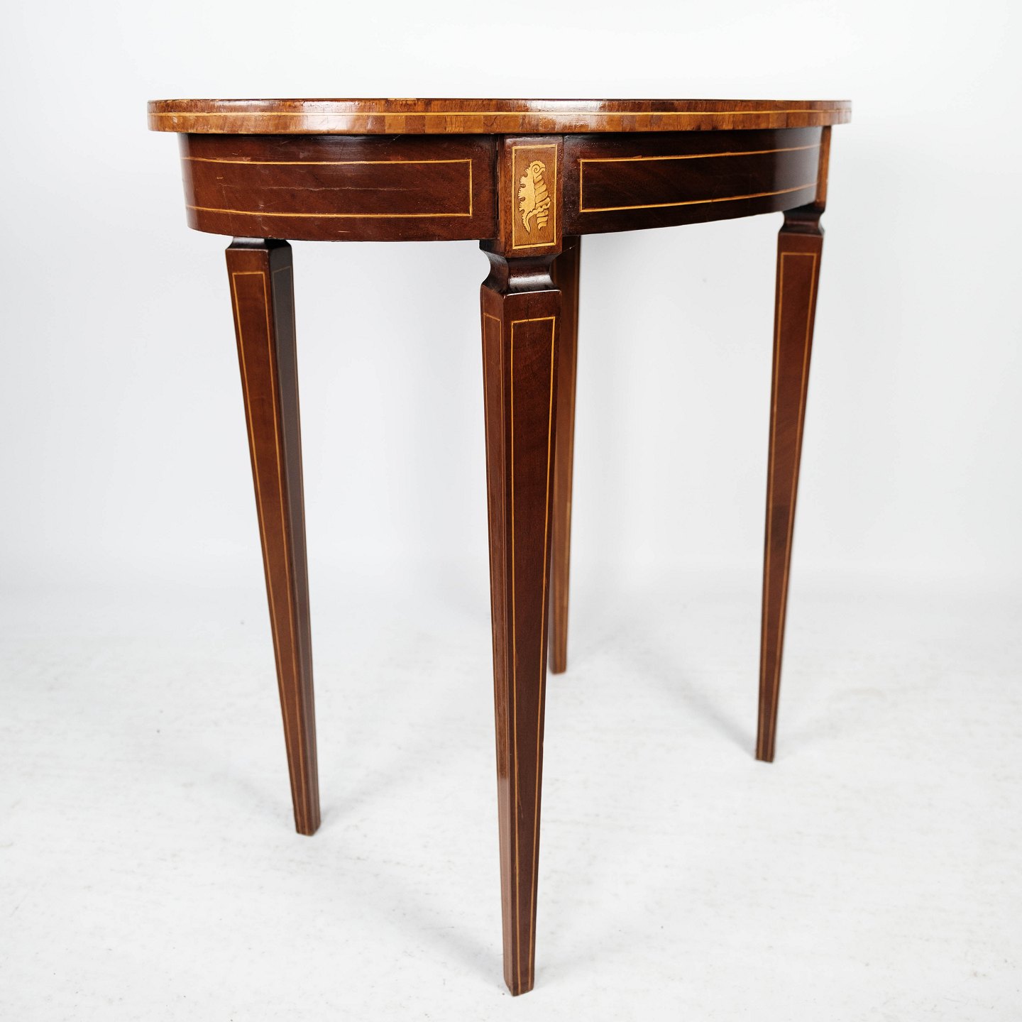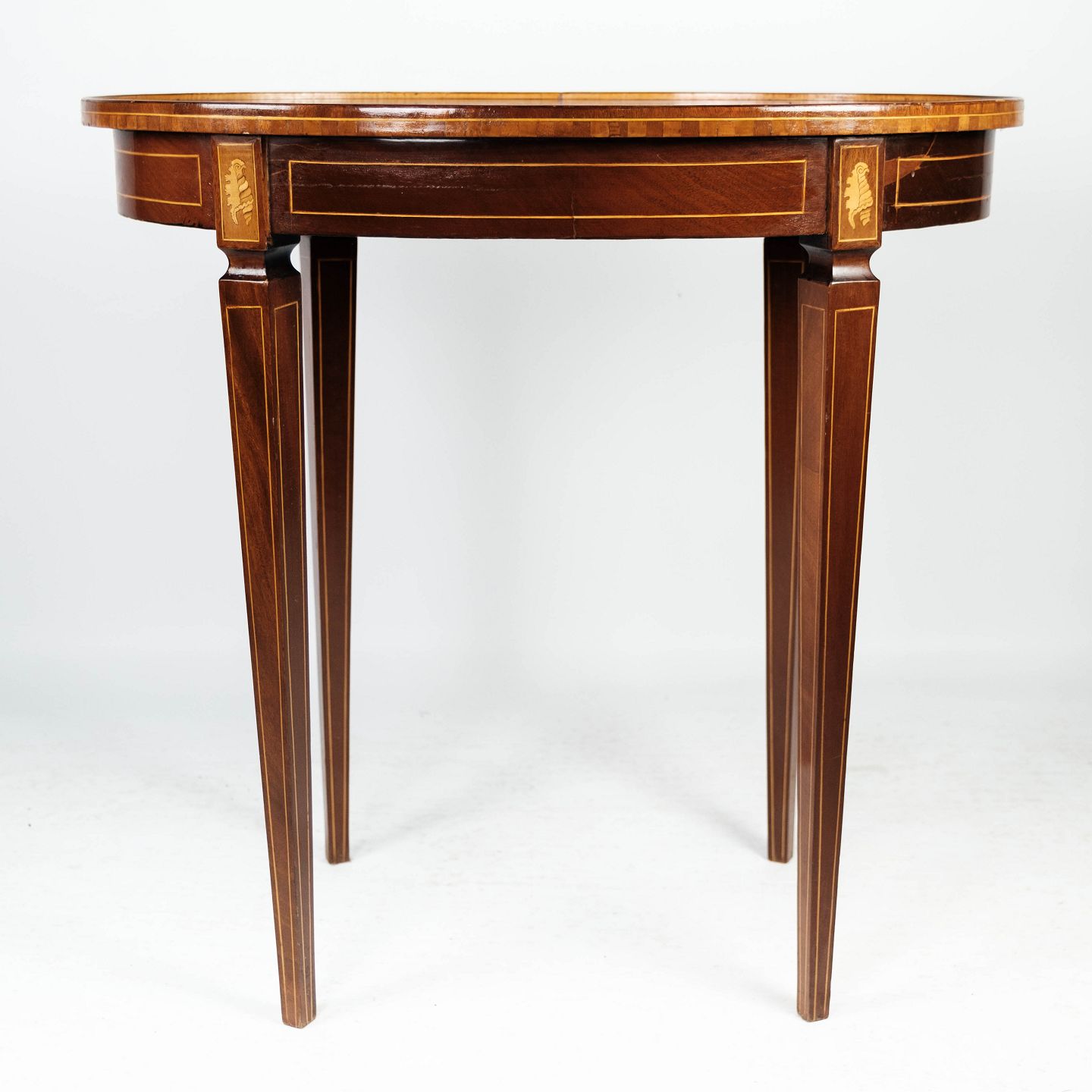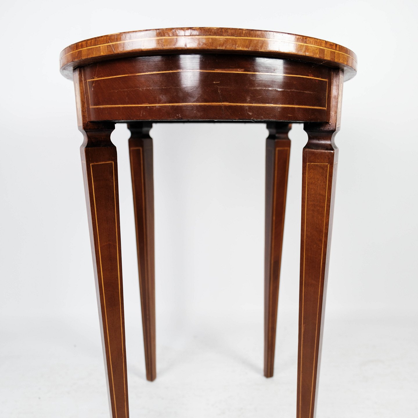 SoldLamp table of mahogany with inlaid fruit wood, in great antique condition from the 1920s.
