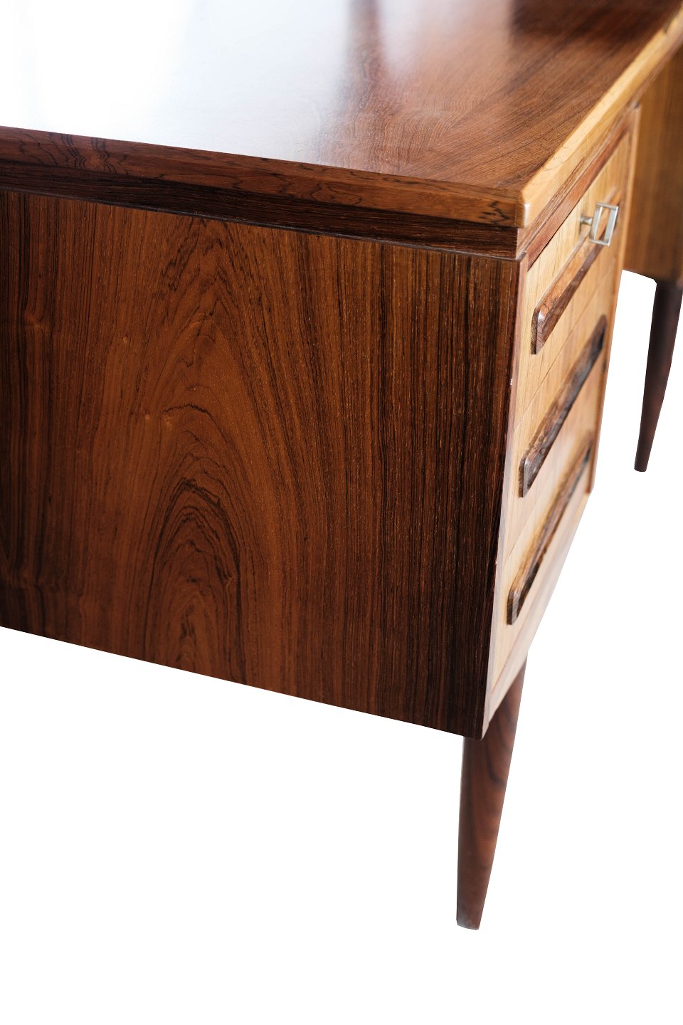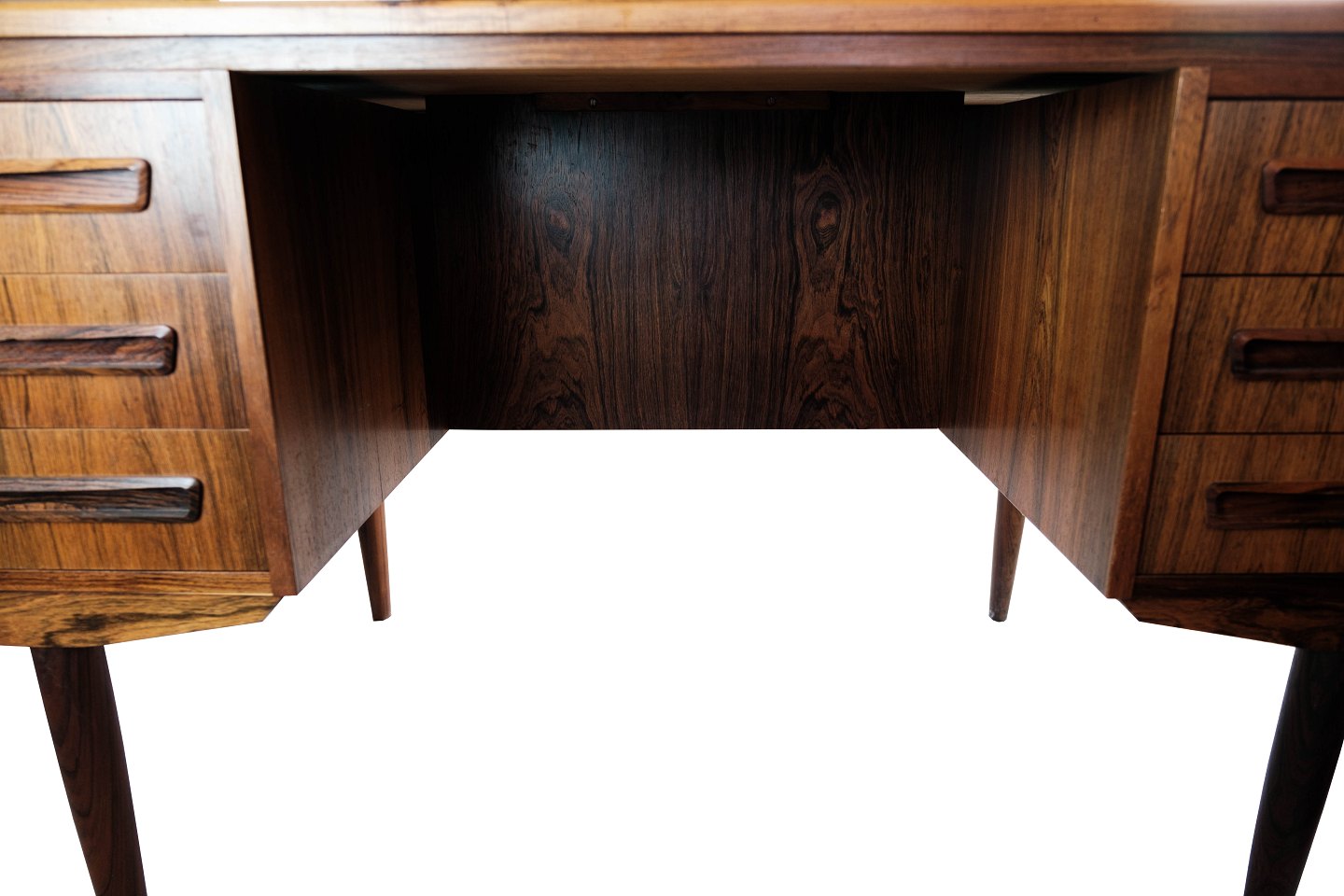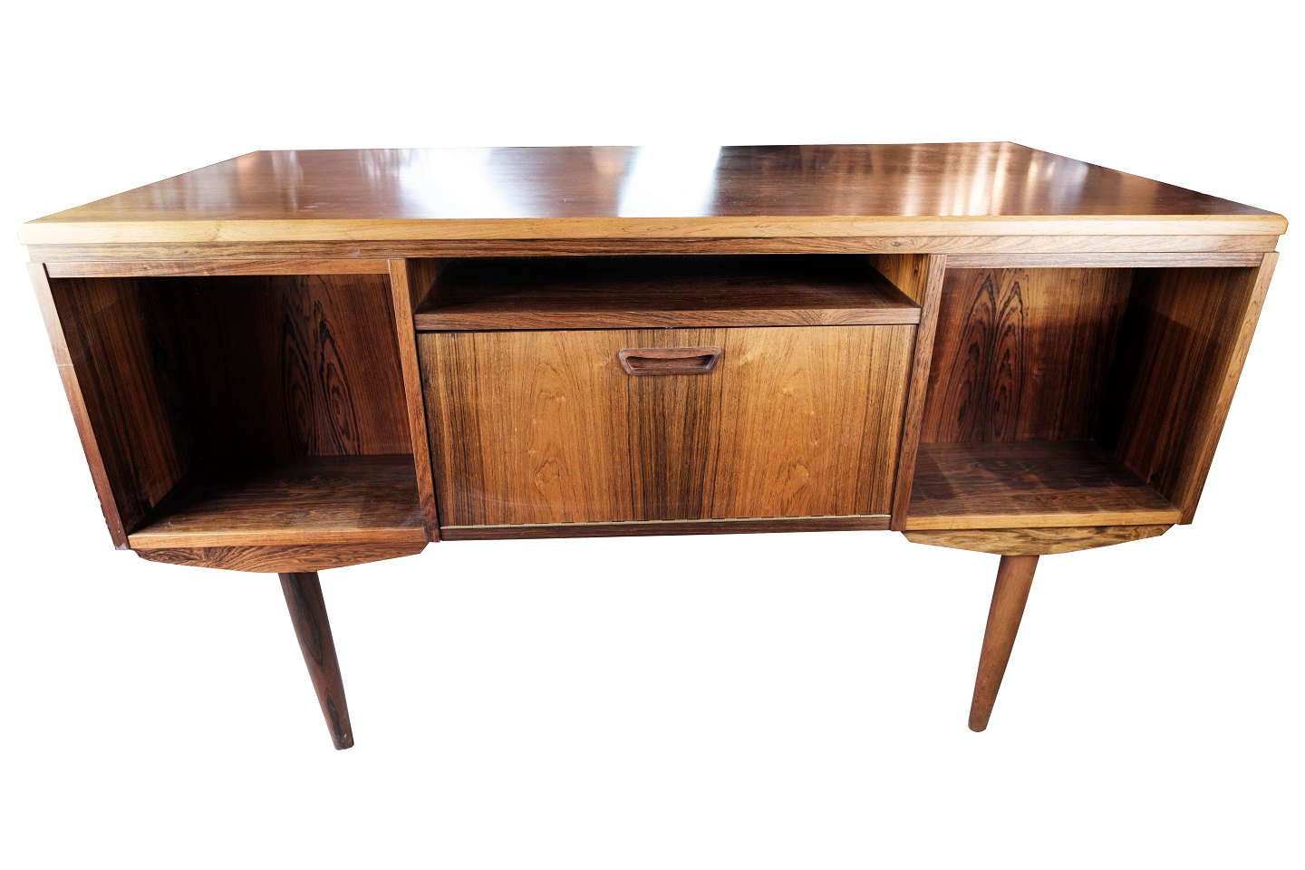 Skrivebordet i palisander, produceret af A.P. Møbler fra Svenstrup J, er et tidstypisk eksempel på dansk møbeldesign fra 1960'erne.