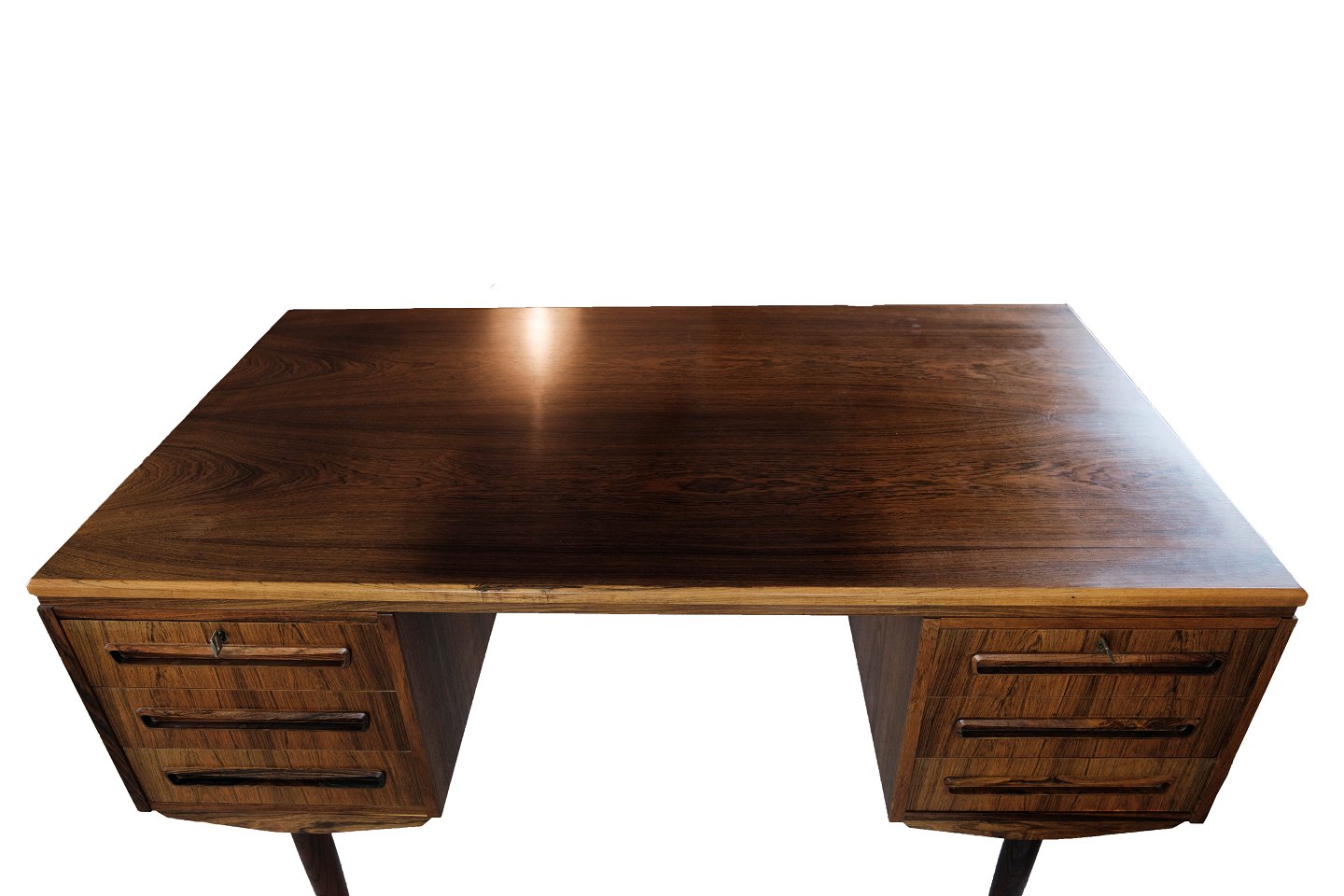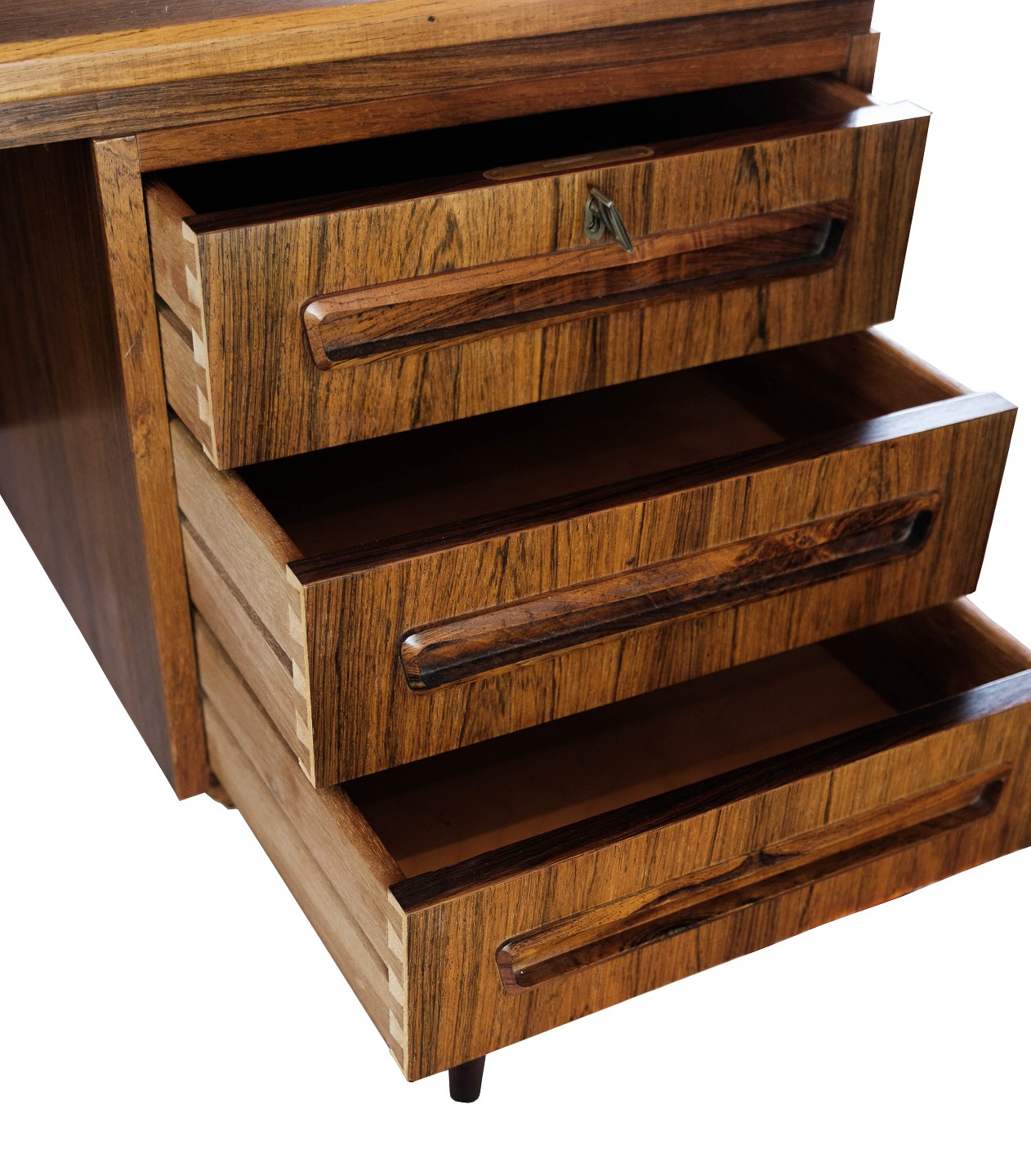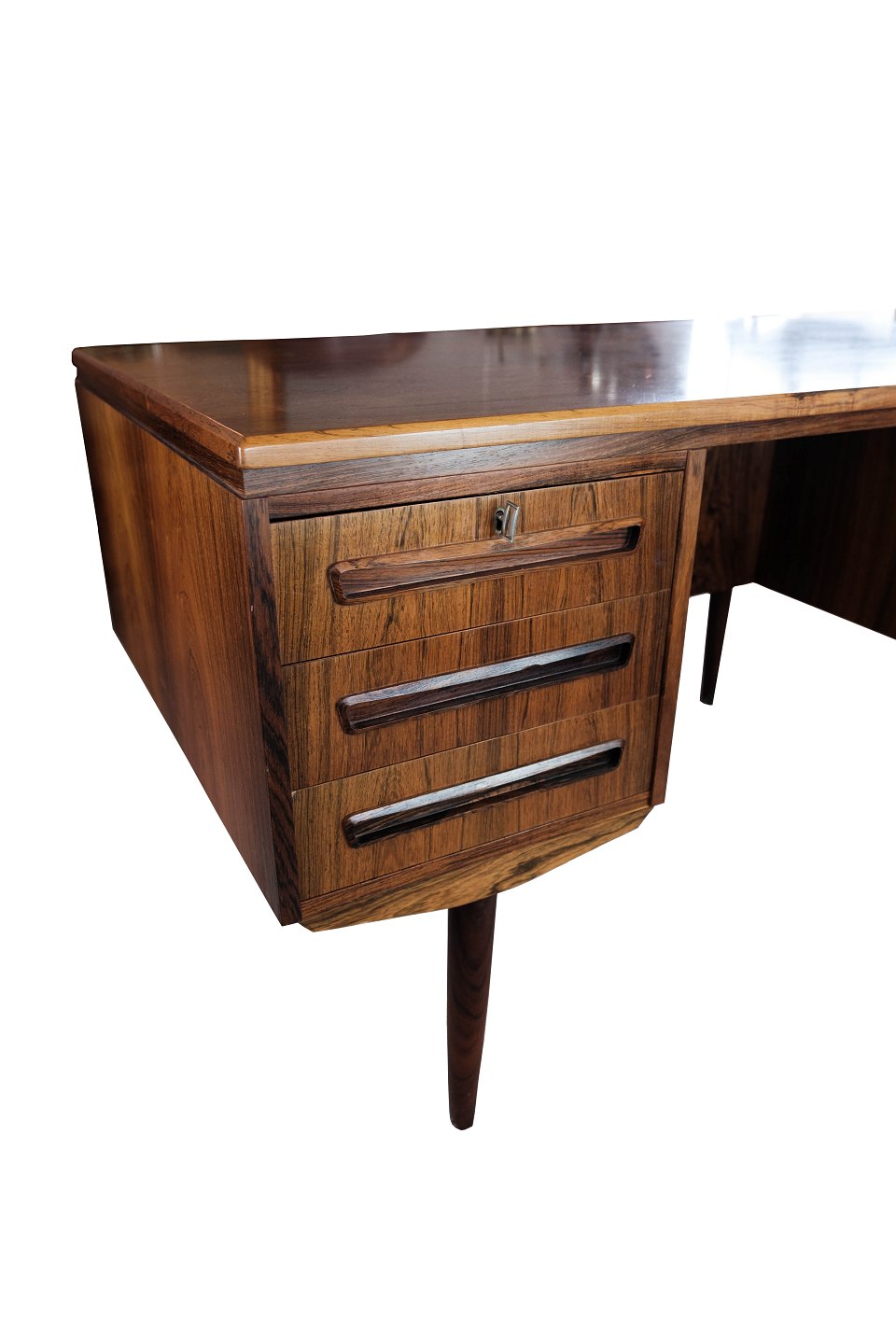 Skrivebordet i palisander, produceret af A.P. Møbler fra Svenstrup J, er et tidstypisk eksempel på dansk møbeldesign fra 1960'erne.