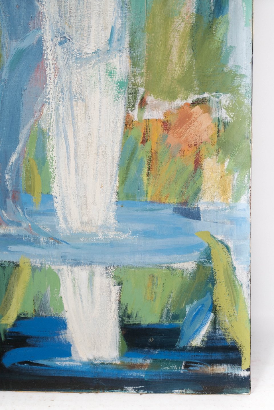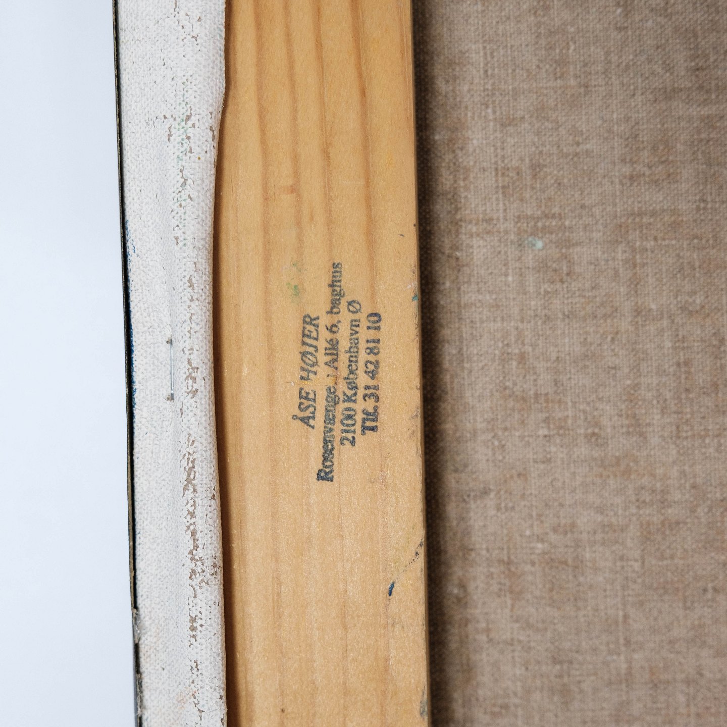 Oil painting on canvas in strong blue colors by the danish artist Åse Højer, b. 1952.