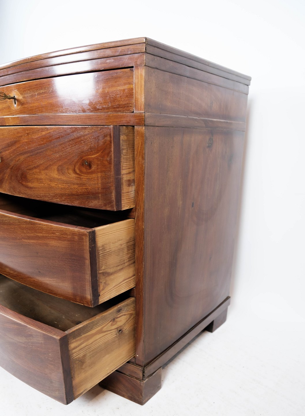 SoldEmpire chest of drawers of polished mahogany with four drawers, from around 1820. The chest is in great antique condition.