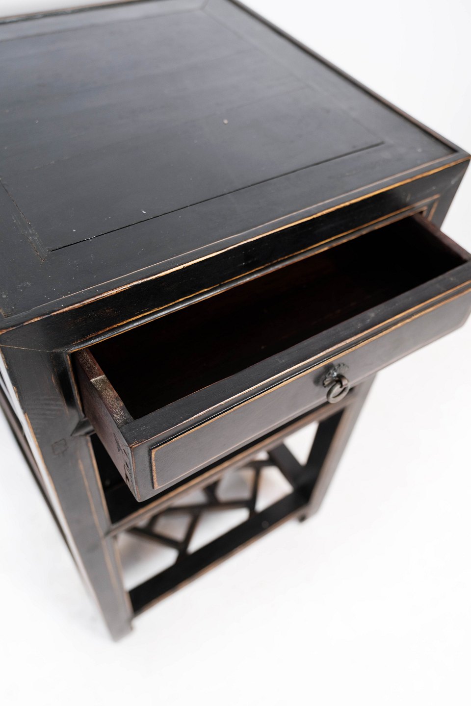 SolgtKinesisk sidebord af sort malet træ med patina fra omkring 1920erne. Bordet er i flot antik stand.