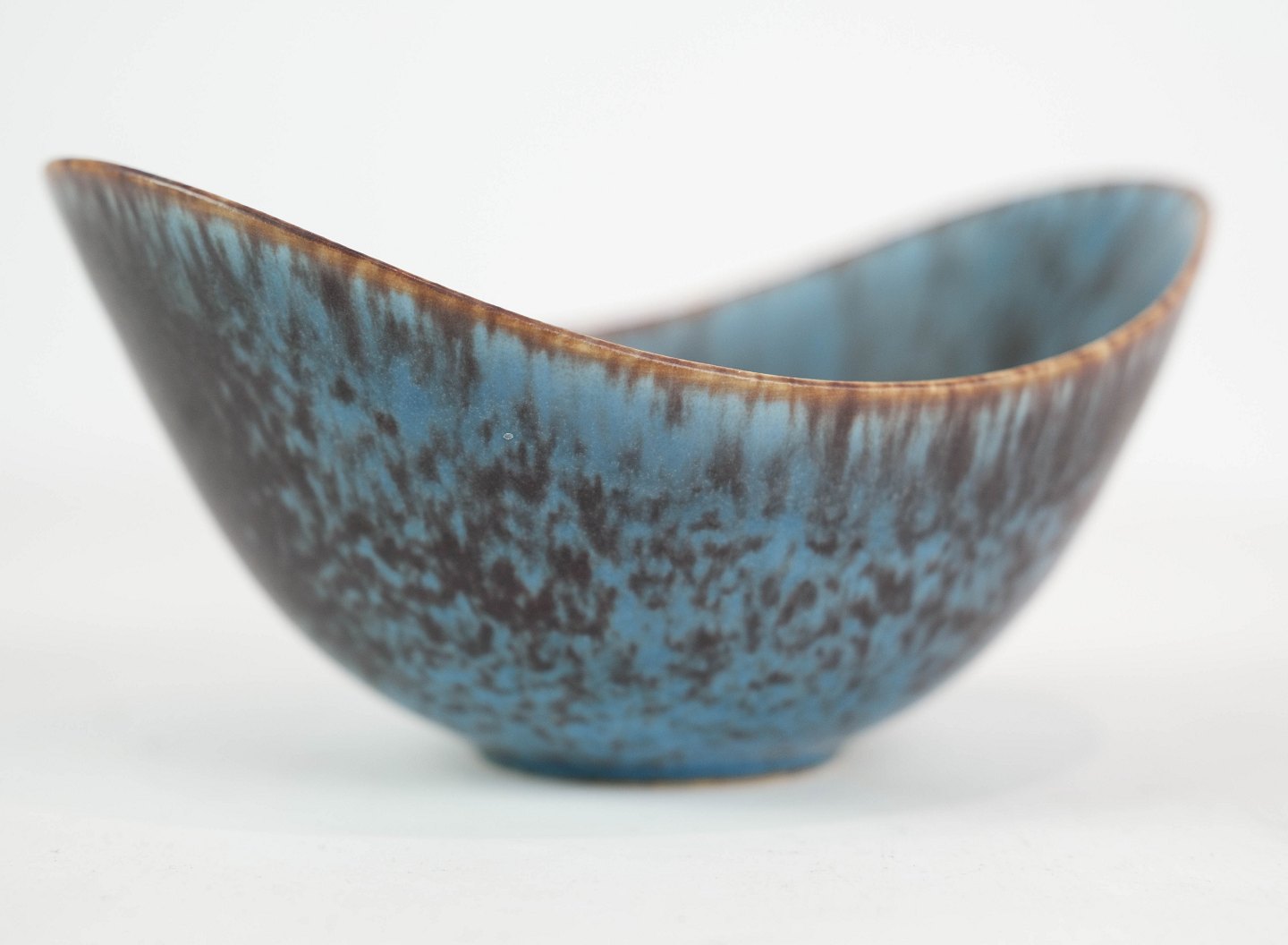 SoldCeramic bowl with blue and brown glace by the artist Gunnar Nylund for Rørstrand. The bowl is in great vintage condition.