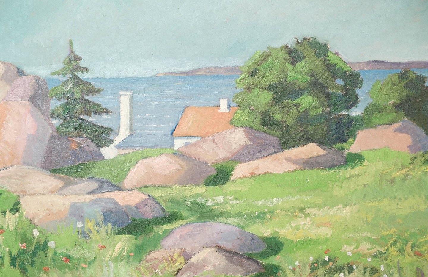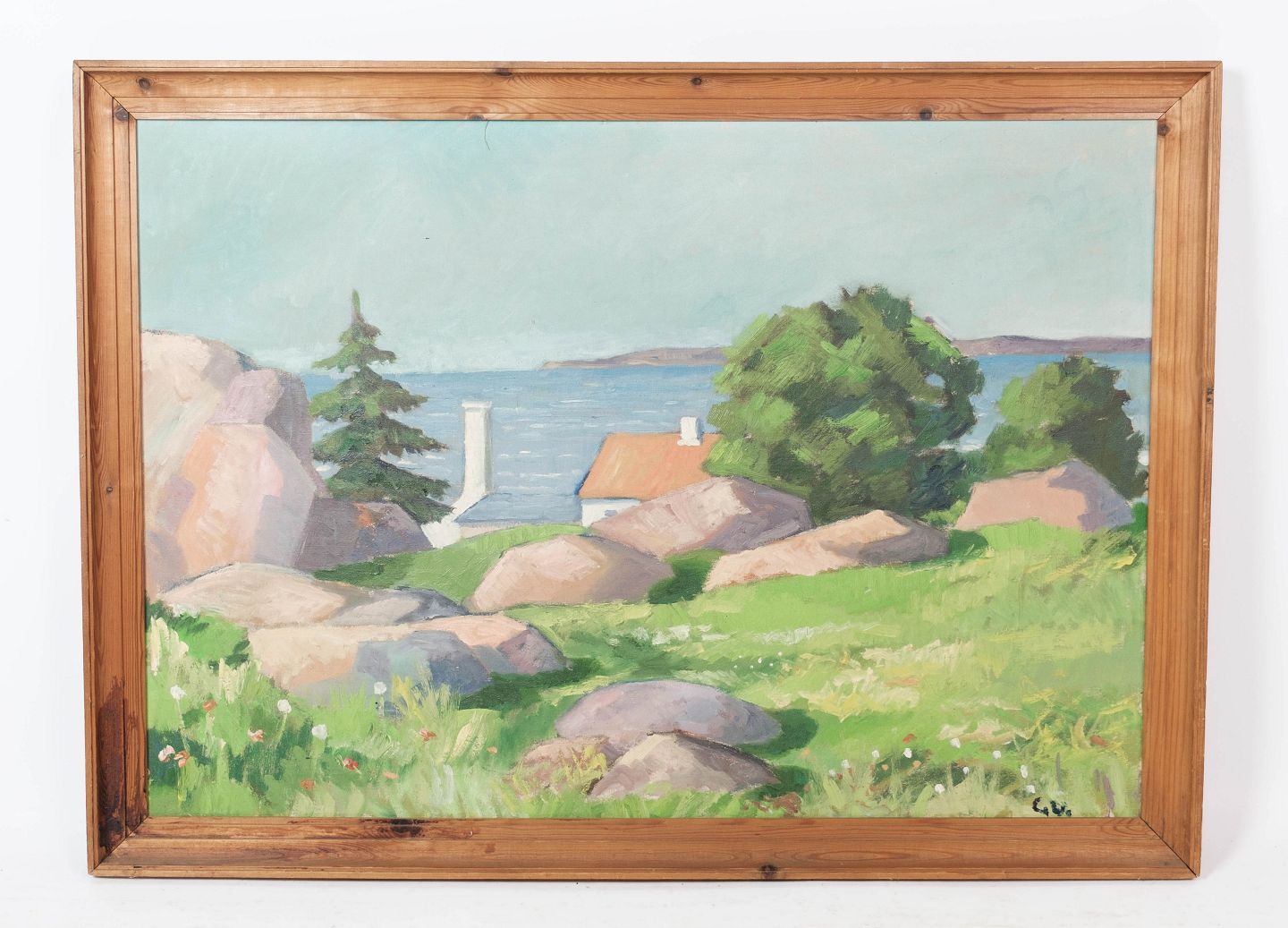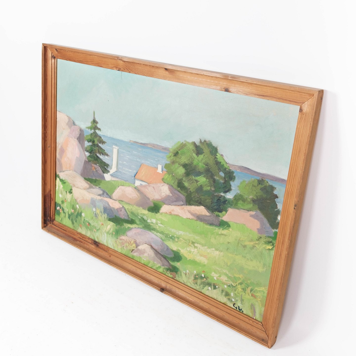 SolgtMaleri på lærred med natur motiv og forgyldt ramme, signeret CK fra 1950erne.