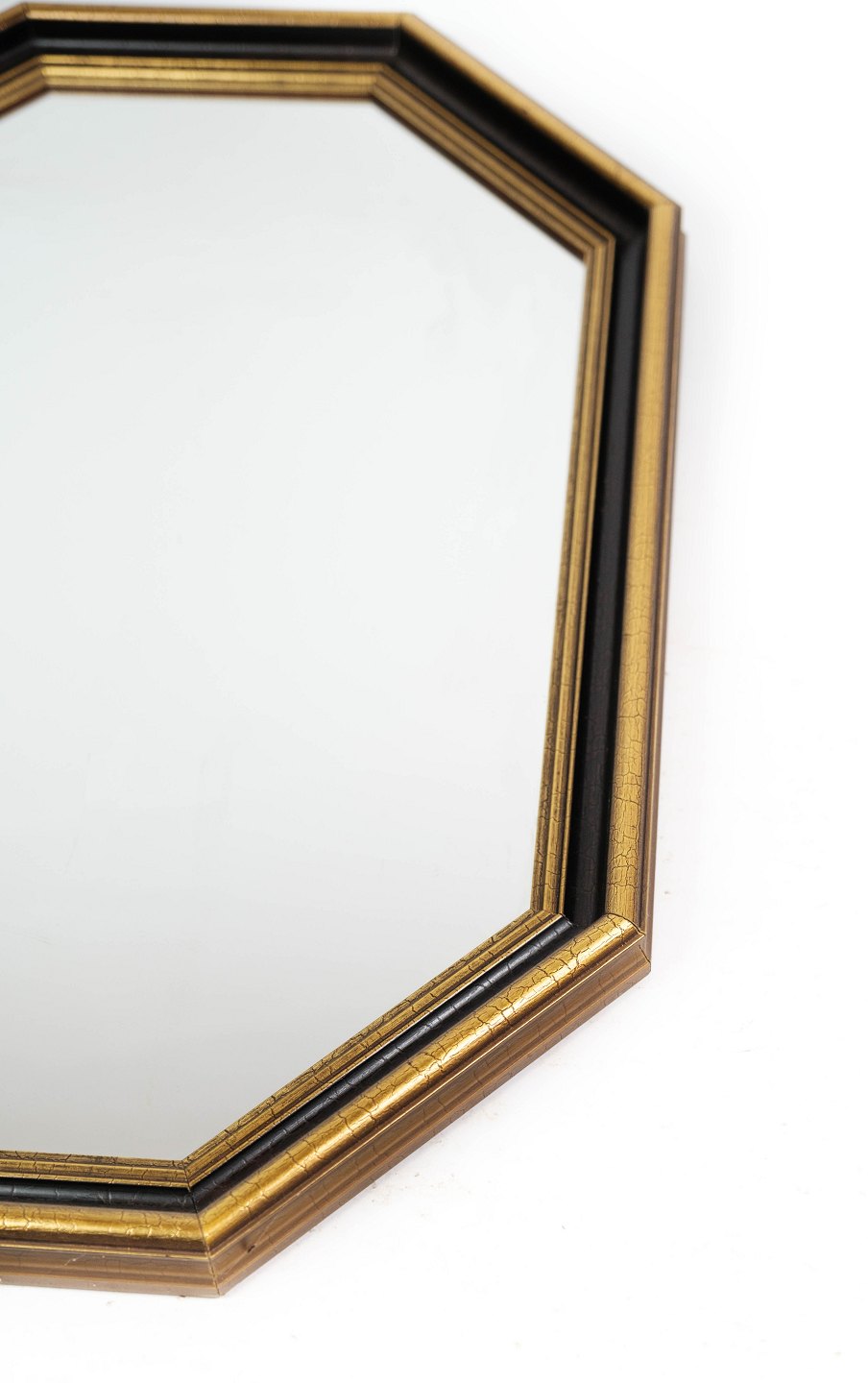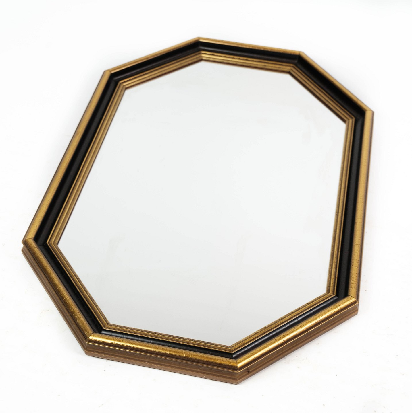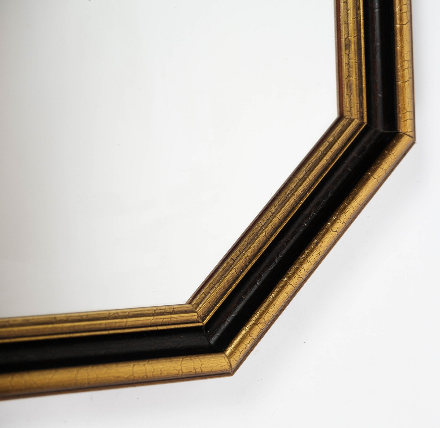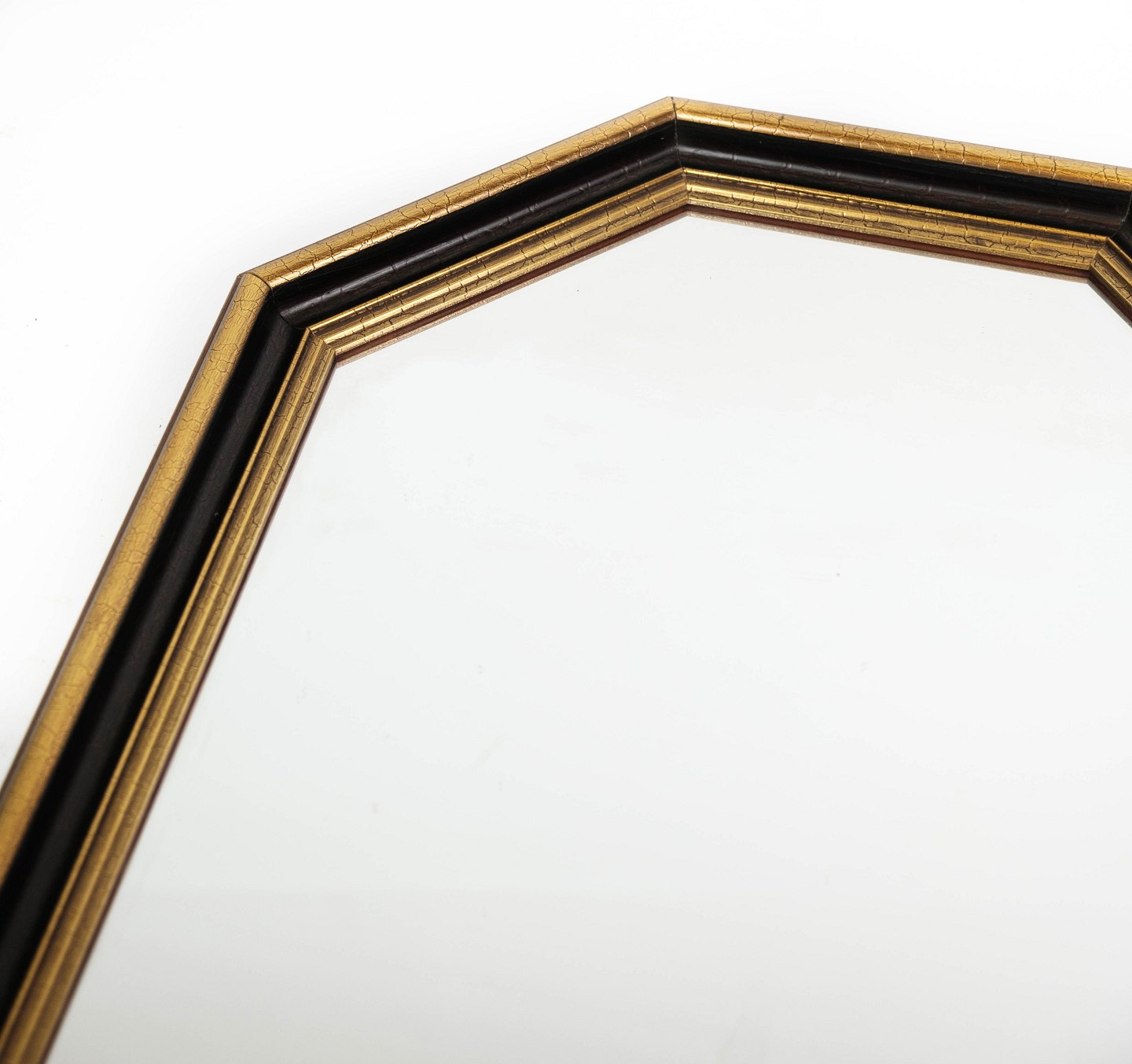 Edged mirror of black and gold painted wood of Danish design from the 1960s.