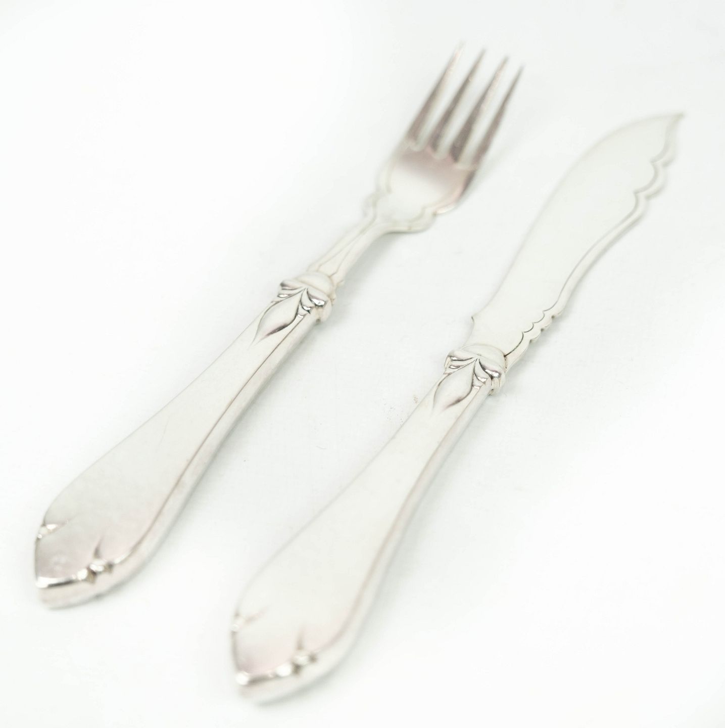 Set of fish cutlery in Freja of hallmarked silver. Ask for number in stock.