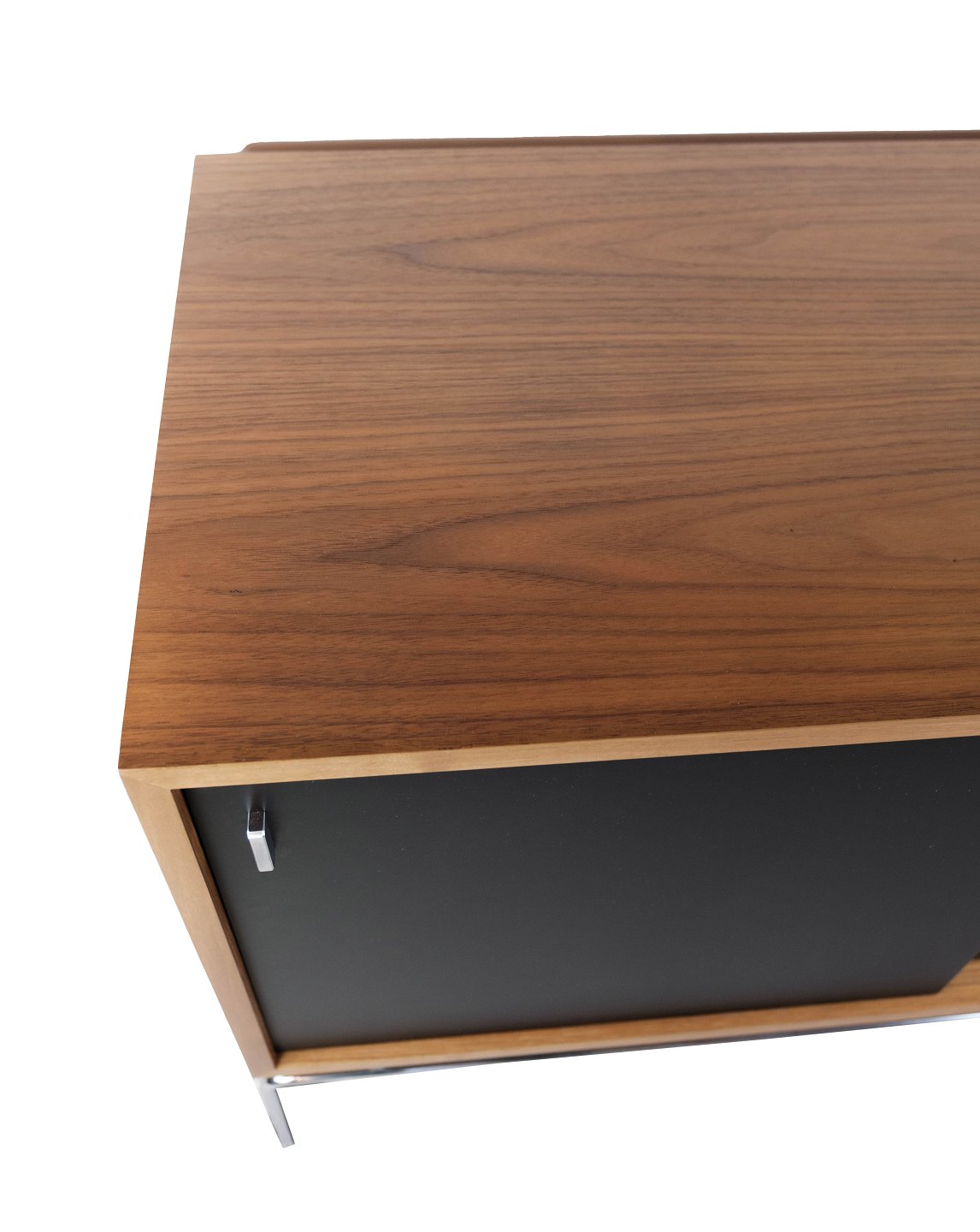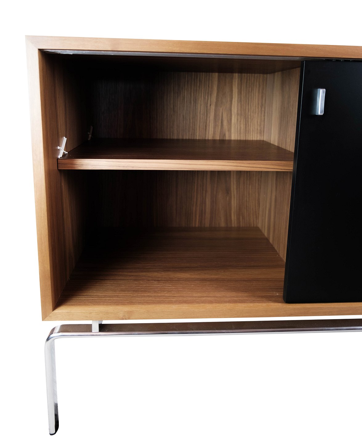 SoldSideboard, model FK 100, of Santon rosewood and black sliding doors, designed by Fabricius and Kastholm, and manufactured by Lange Production. The item is in great vintage condition.