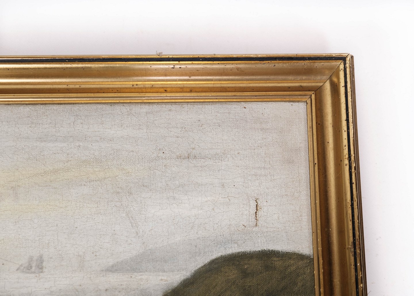 Painting on canvas with nature motif and gilded frame, signed S.H.N. from the 1920s.
