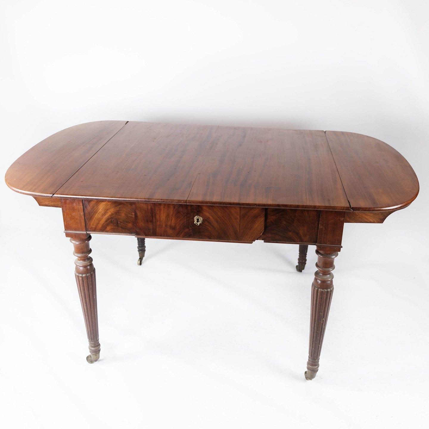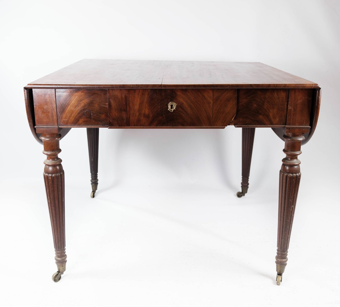 Mahogany dining table with pull-out plates, in beautiful antique condition from the 1840s.