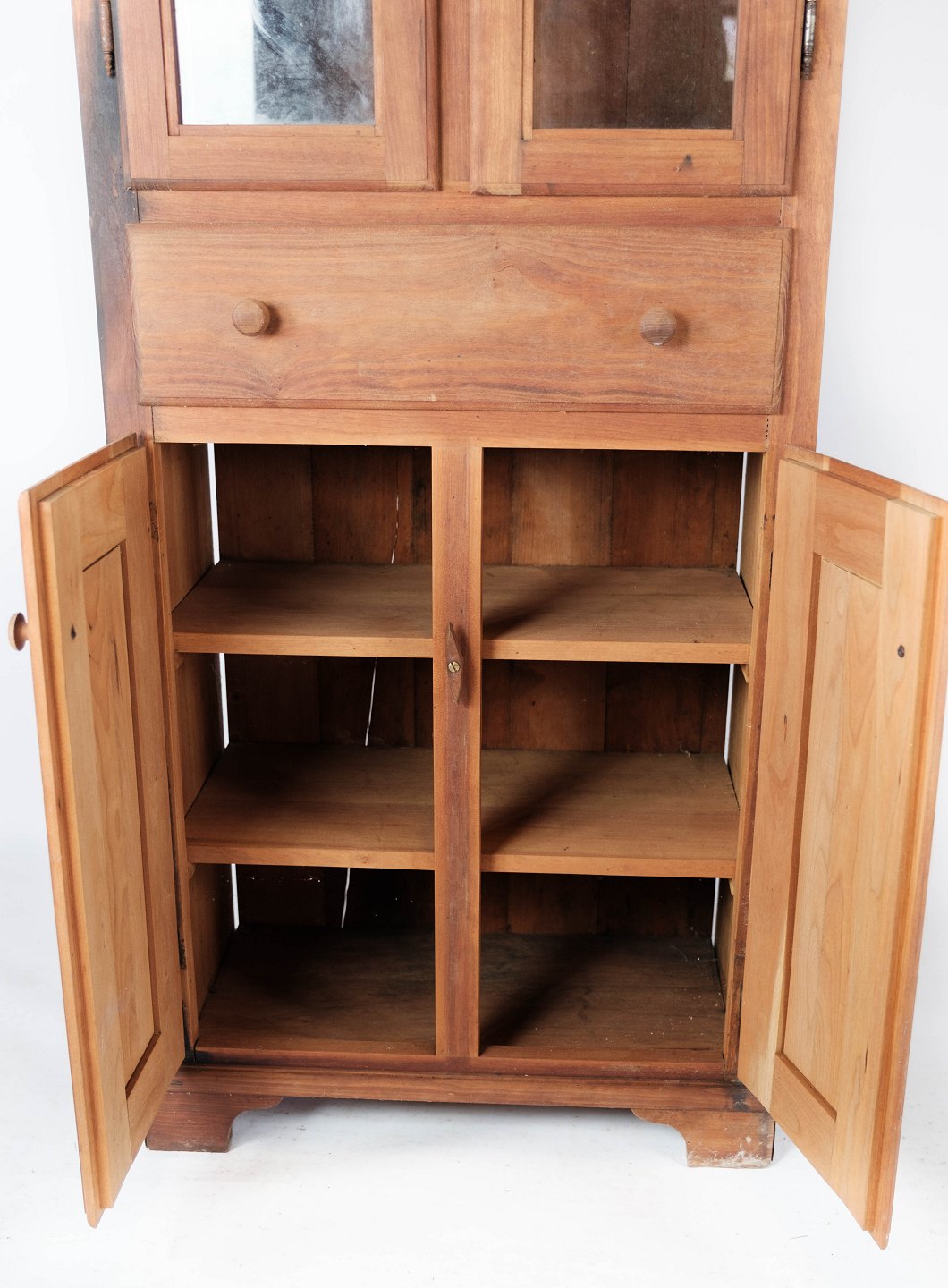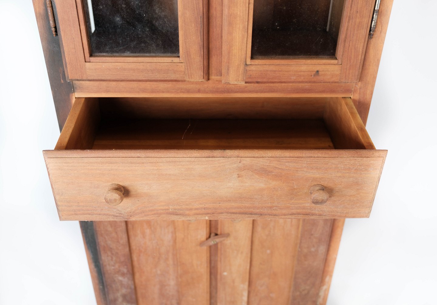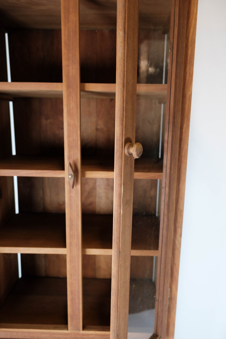 SoldTall glass cabinet of light wood, in great antique condition from the 1940s.
