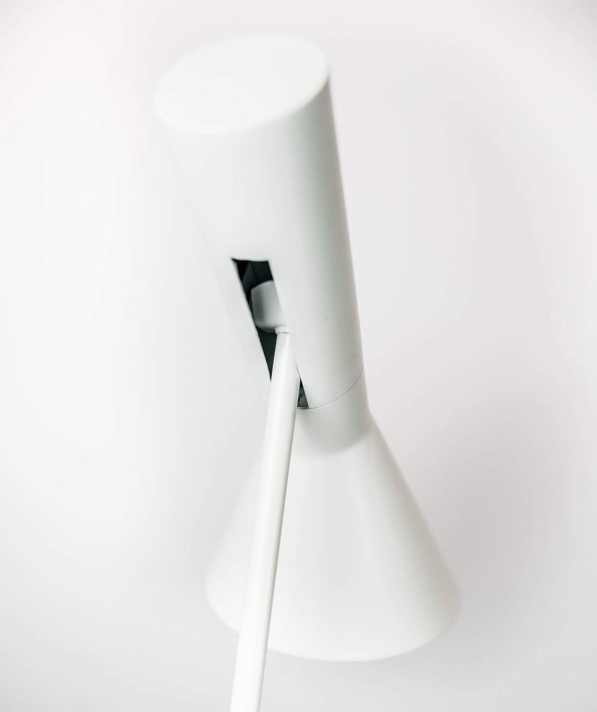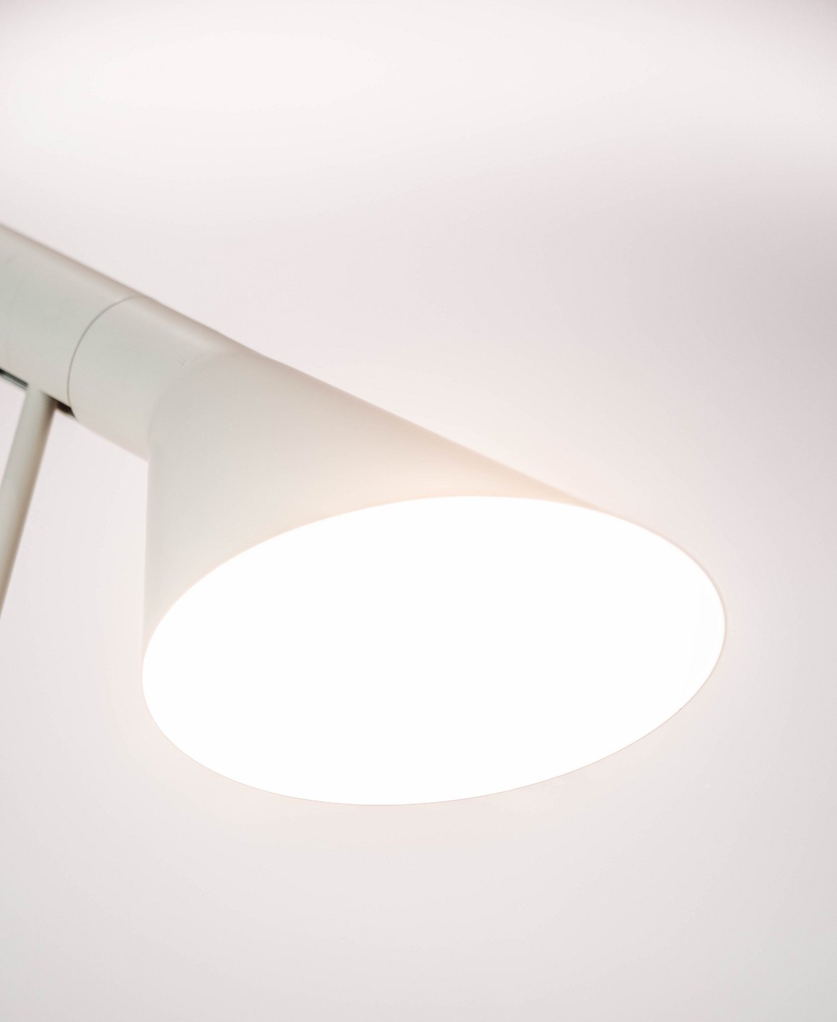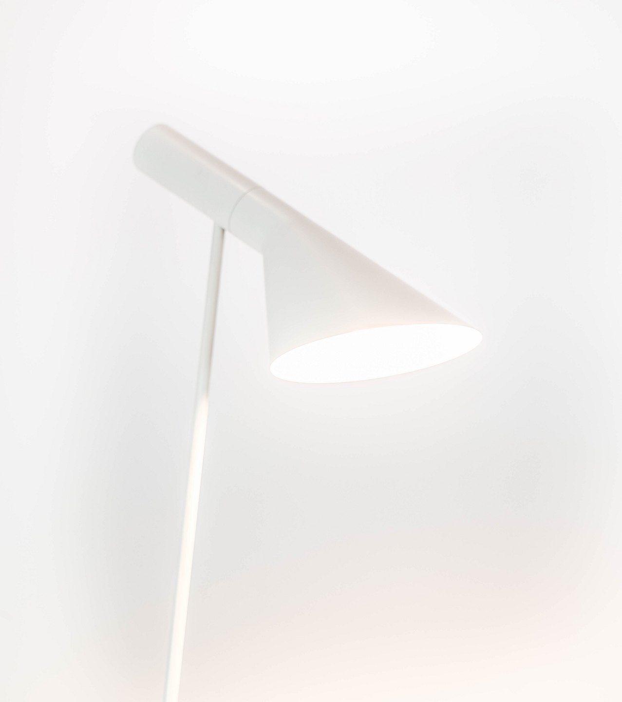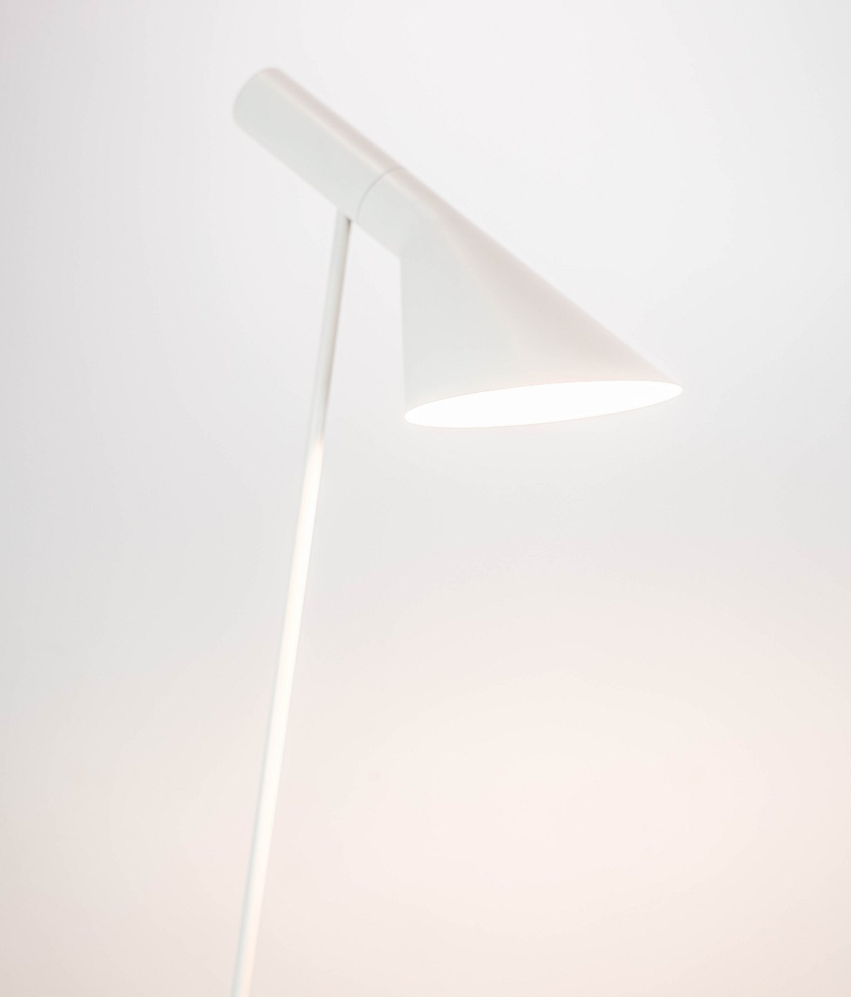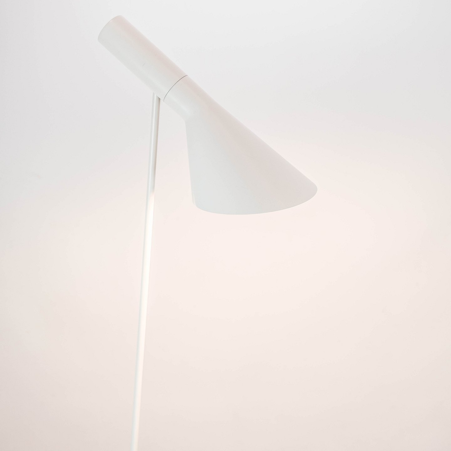 SolgtHvid gulvlampe designet af Arne Jacobsen og fremstillet af Louis Poulsen. Lampen er i flot brugt stand.